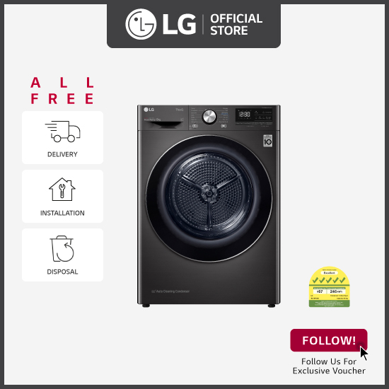 [Bulky] LG TD-H90VBD 9KG Dual Inverter Heat Pump dryer (Black) + Free 4 Boxes Of Fabric Softener + Free Delivery + Installation + Free Disposal