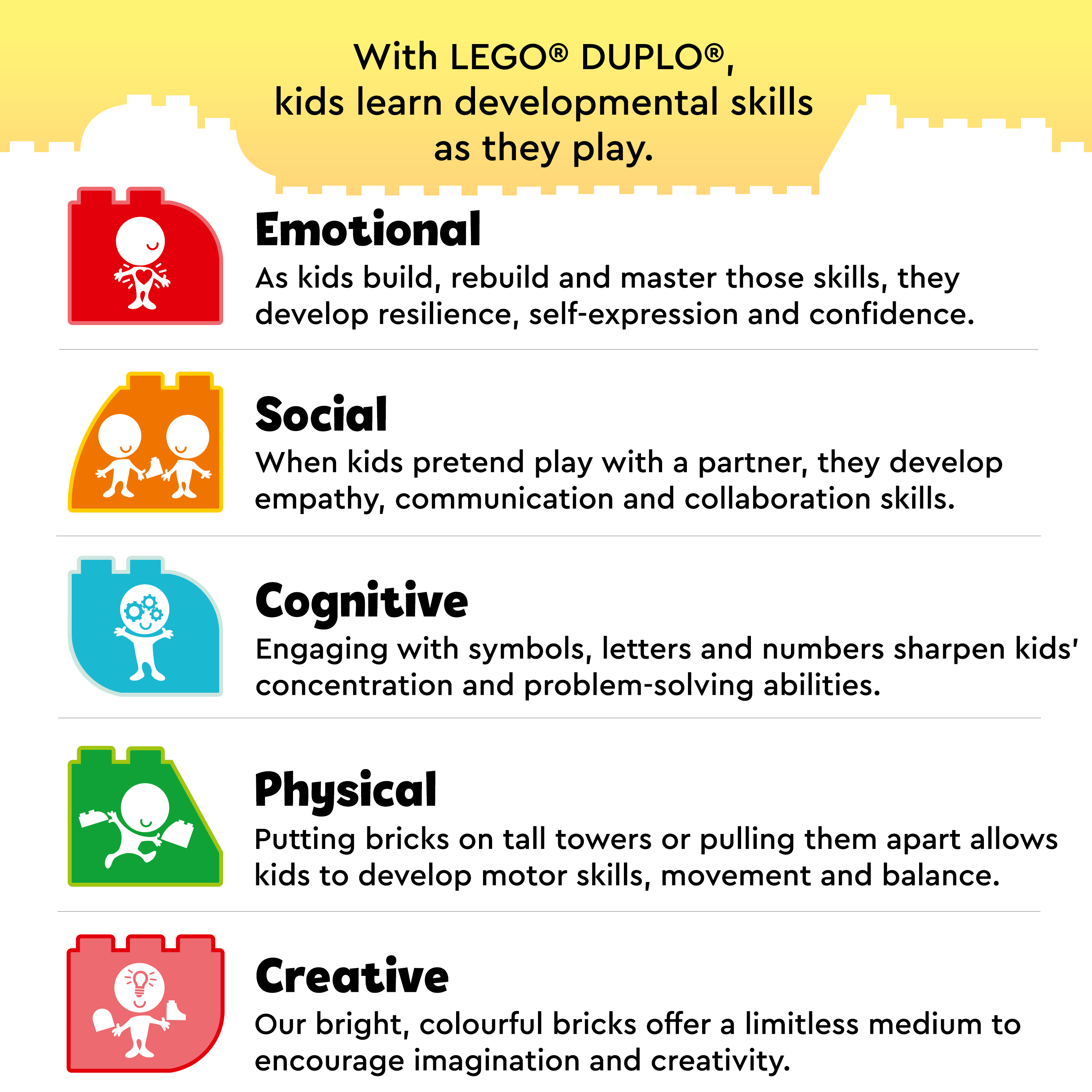 Kids develop fine motor skills as they construct the cake and grow their creativity by arranging the train however they like.