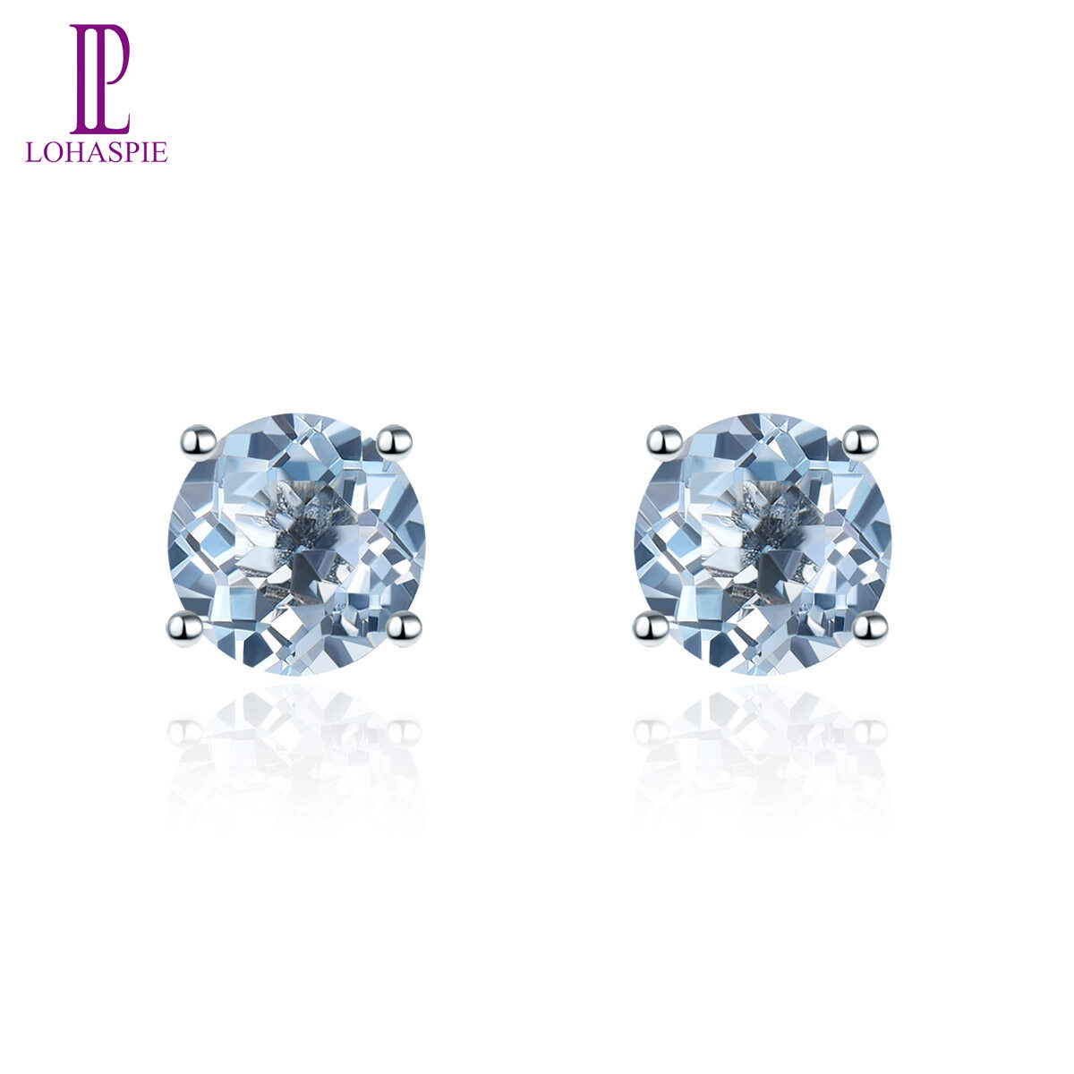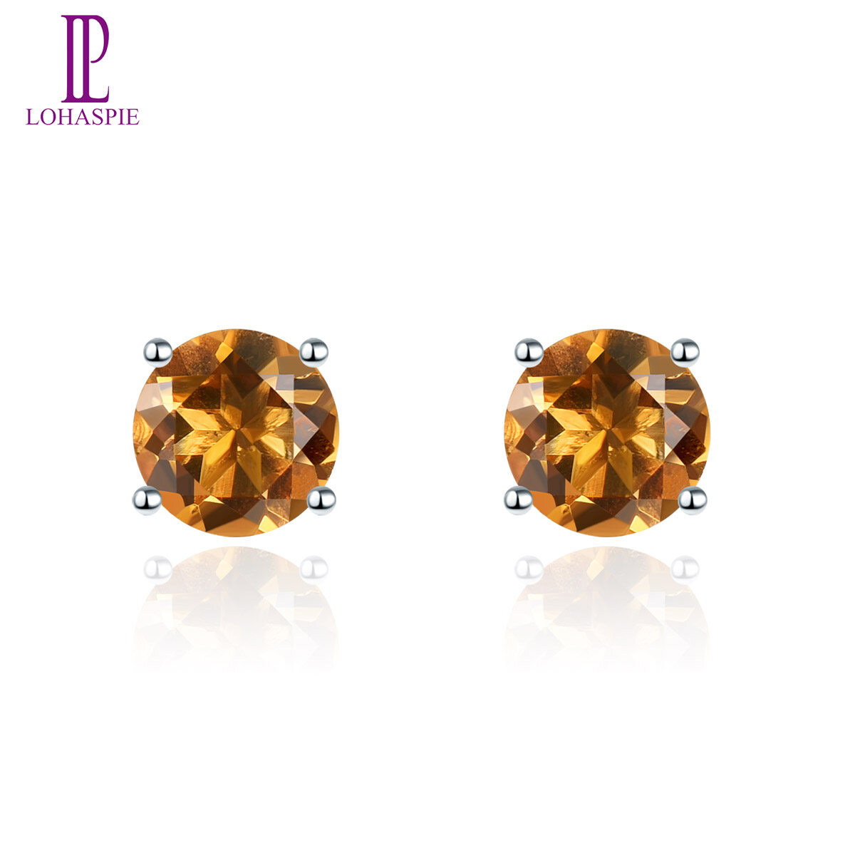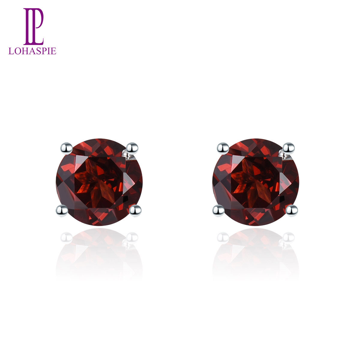 Round Stud Earrings for Women Gift Natural Amethyst Garnet Solid 925 Sterling Silver