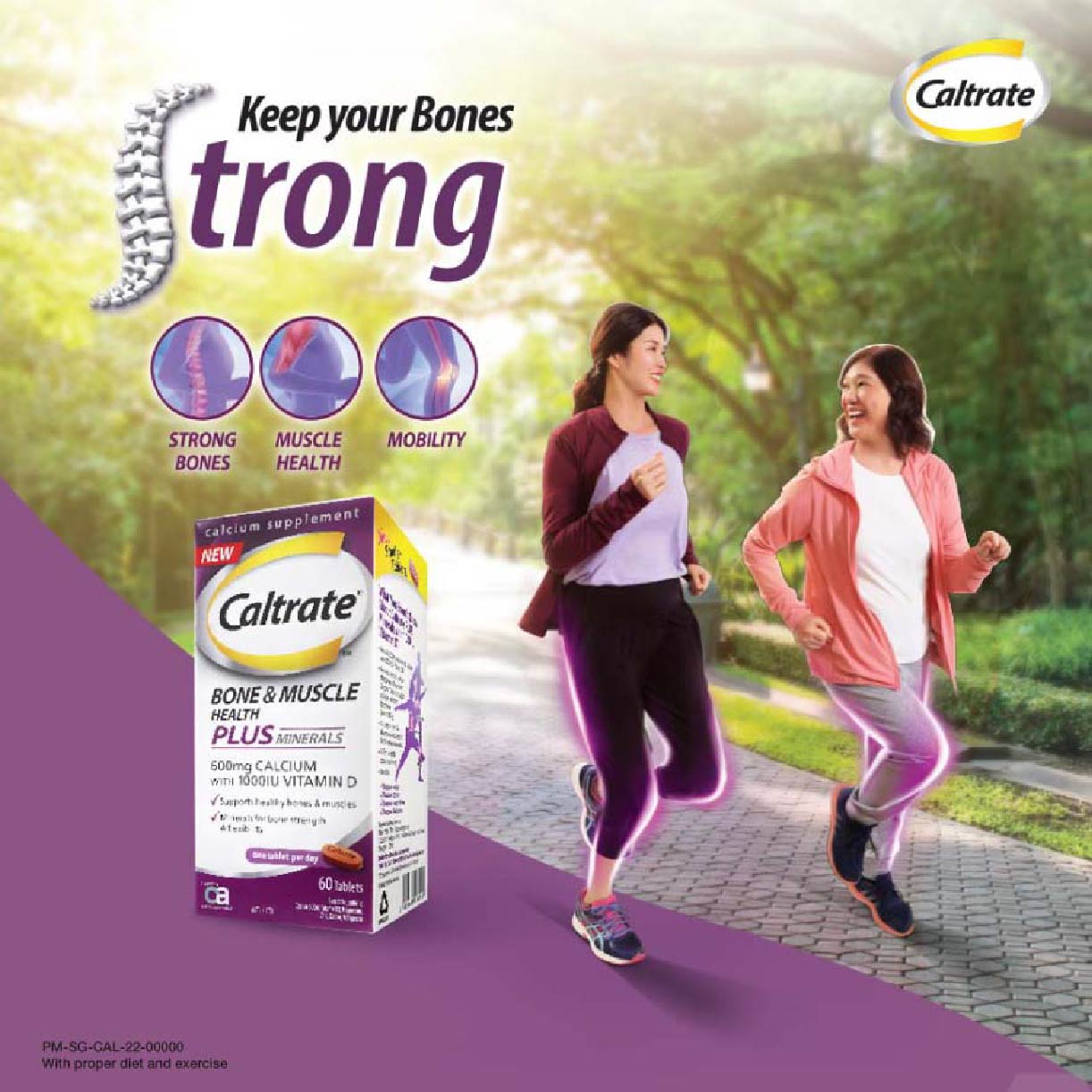 Caltrate® BONE & MUSCLE HEALTH PLUS MINERALS contains, 600mg elemental calcium, 1.5x more Vitamin D at 1000IU and 4 bone fortifying minerals for stronger bones and greater mobility