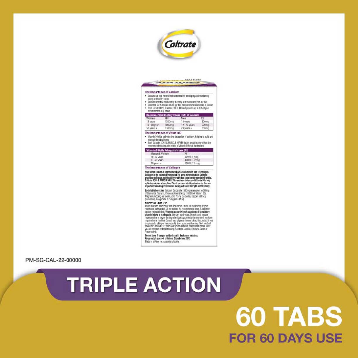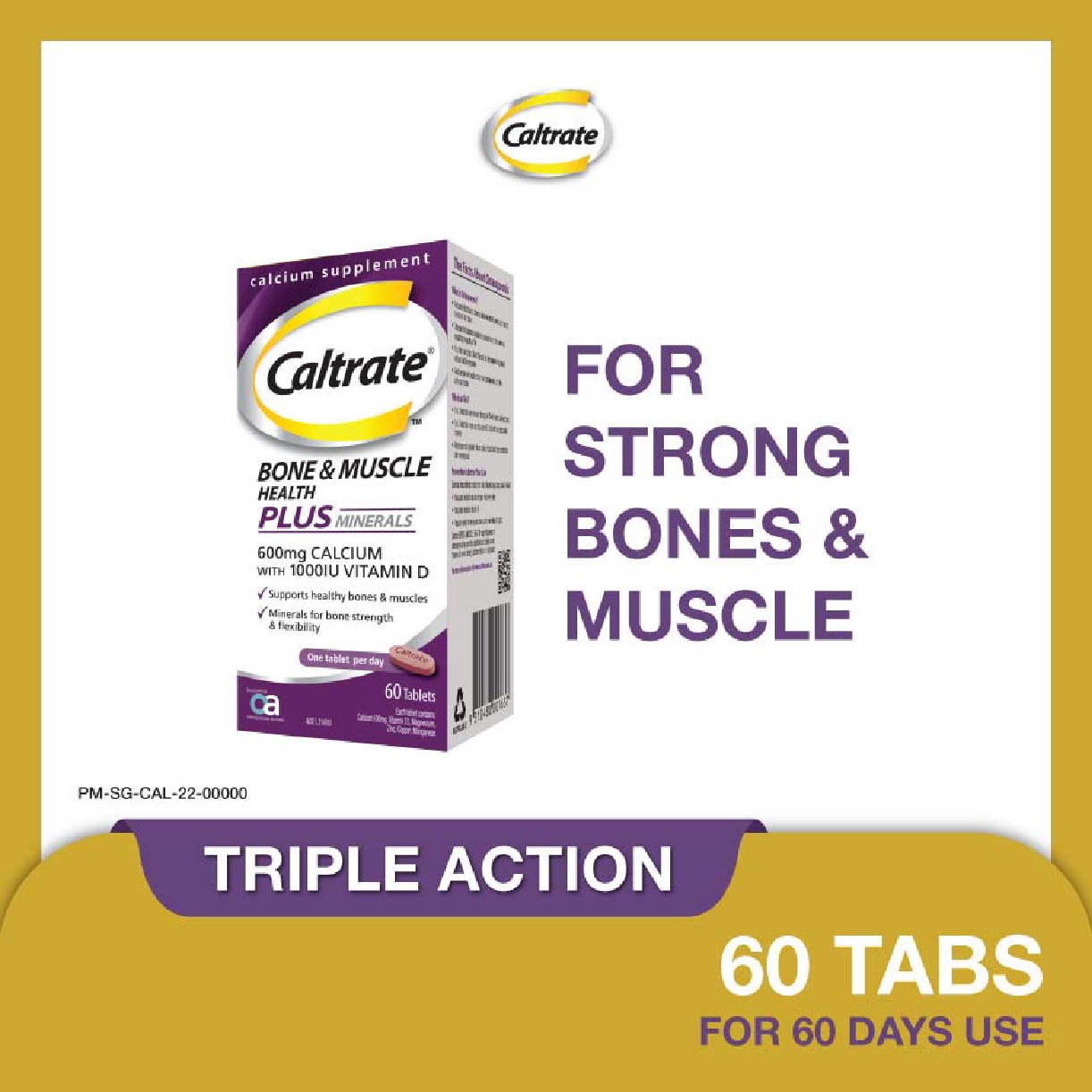 CALTRATE Bone & Muscle Health Plus Triple Action Calcium + 1000IU Vitamin D + Minerals Supplement Tablet (For Strong Bones & Muscles) 60s