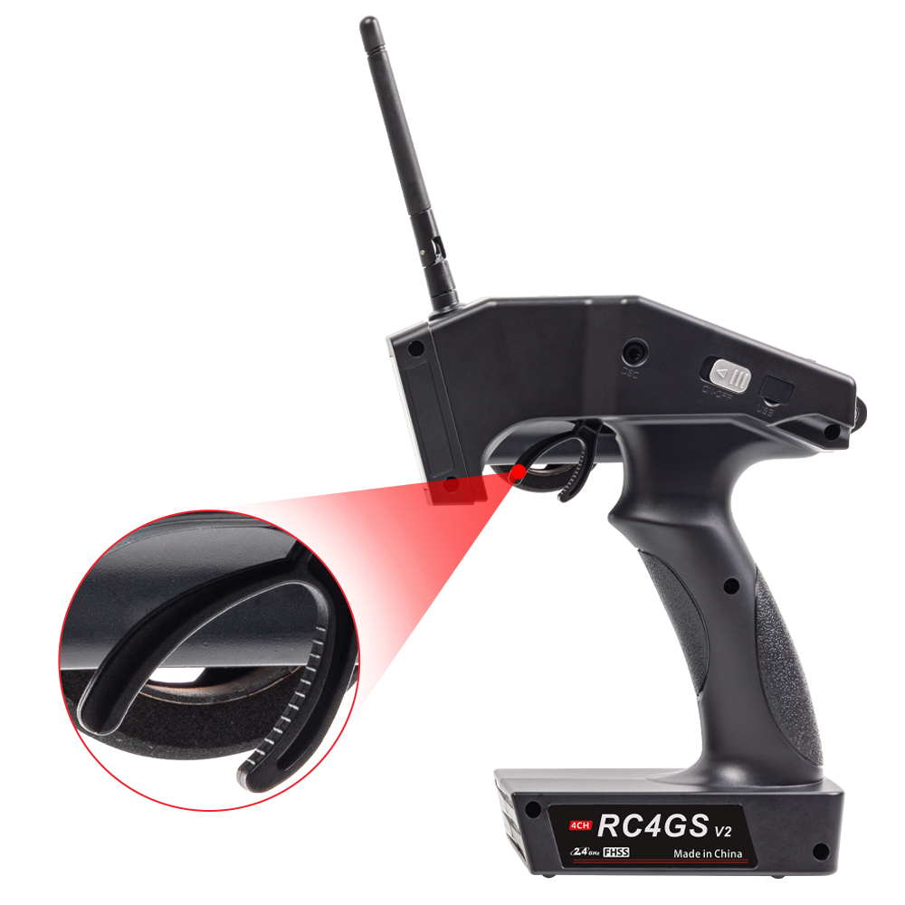 【Excellent Anti-interference】: With pseudo random FHSS algorithm, which makes RC4GS with excellent anti-interference ability, control range up to 1300 feet (400 meters). 【Built in Gyro】: Built-in gyro can keep the vehicle in a straight line, and Gyro sensitivity can be adjusted by the transmitter's VR switch, which fits for drifting car and on-road cars. 【Powerful Function】: EPA, ABS, fail-safe, D/R, IDLUP, low power alarming, subsidiary ID(control multiple receivers separately),etc. CH3-CH4 can be customized to VR and tact switch. 【Dual Programmable Mix Control】: Mix control can be programmed with any two channels and each channel can be customized. That's friendly for twin-engine vehicles, such as tanks, boats, 4 wheel steering car. 【Adapts to Most of Types Vehicles】: with 10 models memory, each model can be set up and named separately. It is suitable for RC rock crawler, monster truck, buggy, gas powered, nitro, on/off-road RC car, etc.