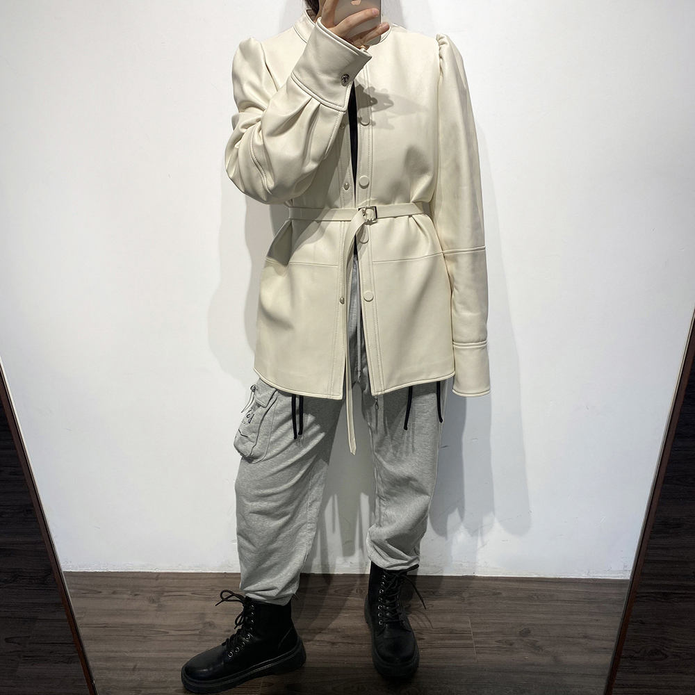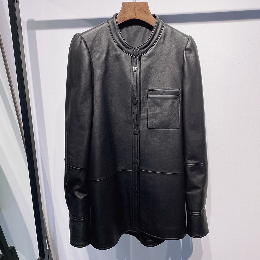2022 Autumn New Oversized Women Single Breasted Leather Shirt Blouse Real Leather Jacket For Ladies