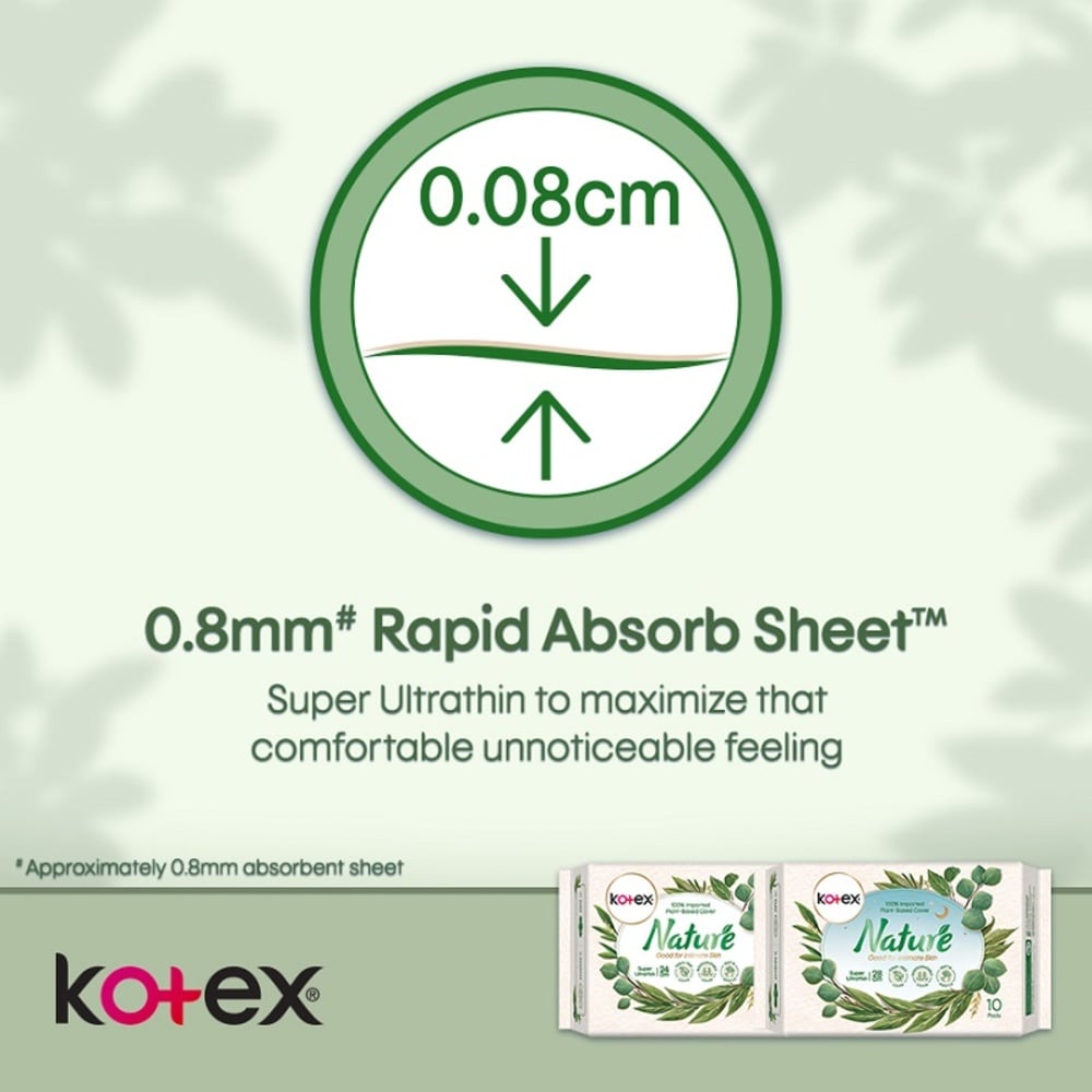 KOTEX Nature Super Ultrathin Sanitary Pad 24Cm Day Use 100% Plant Based 12S