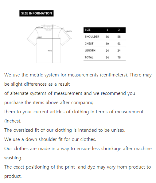 ★We recommend you purchase the items above after comparing them to your current articles of clothing in terms of measurement (inches).