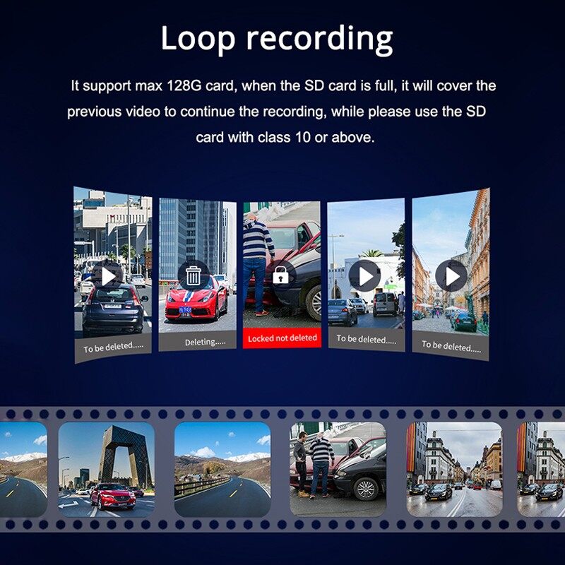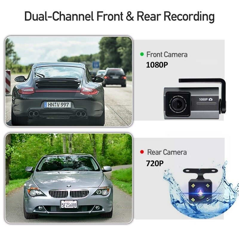 • Specifications: single recording in front of the car, double recording in front of the car + rear