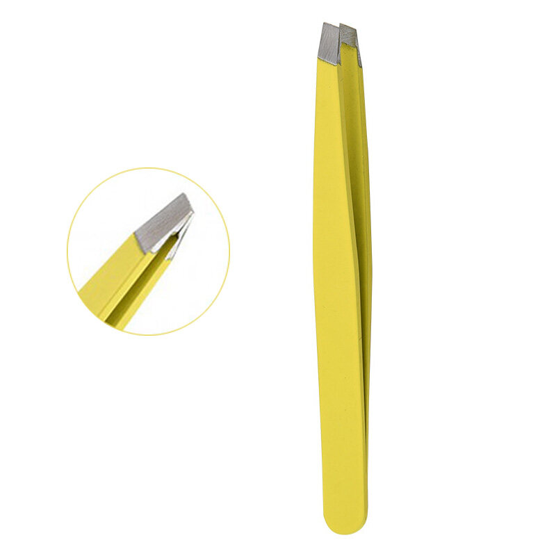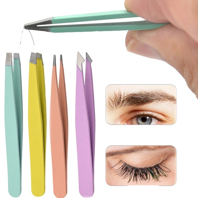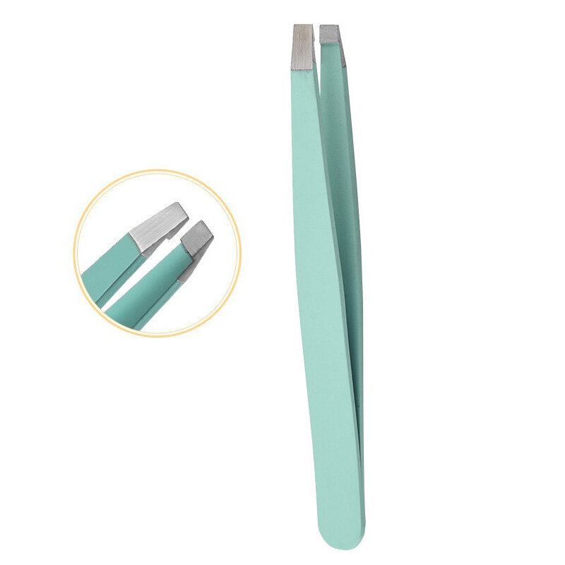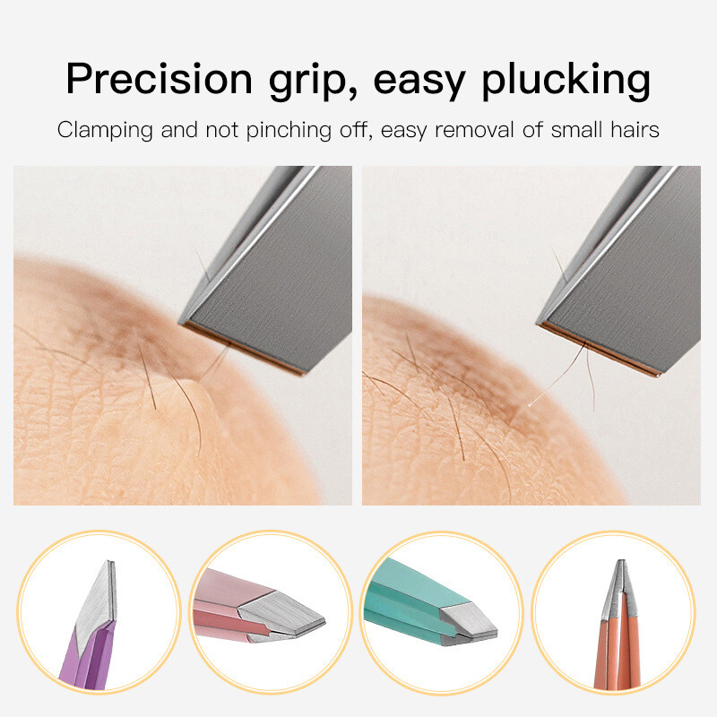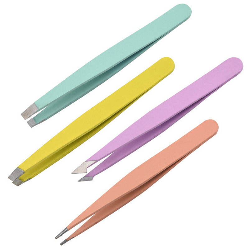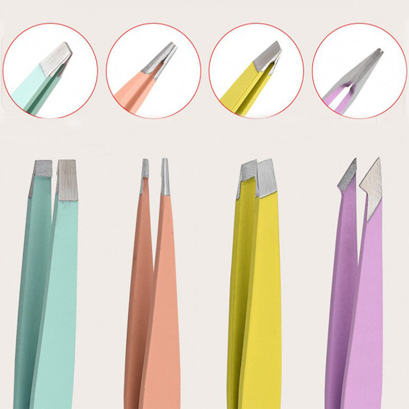 Hair Removal Tweezers Stainless Steel Eyebrow Tweezers Pink Slanted Black Tip Point Face Harmless Makeup Beauty Tool