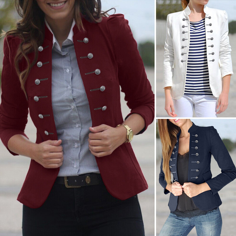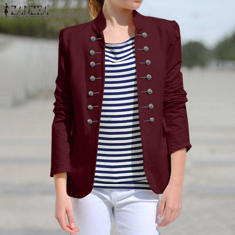 ZANZEA Women Long Sleeve Jacket Outwear Fit Double Breasted Plain Blazer Suit Coat
