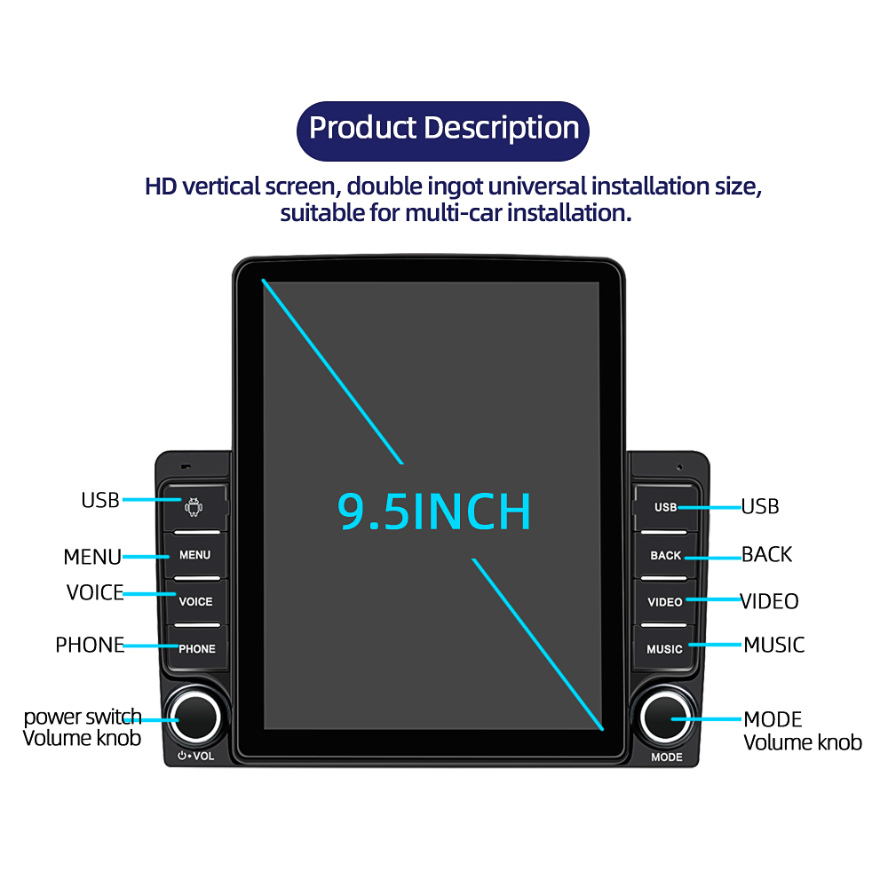 EKLEVA 2 Din 9.5 Inch Car Radio Player Android 10.1 RAM+ROM 1GB+16GB Vertical Screen IPS high definition screen Quad-Core Bluetooth Hands-free 9580A
