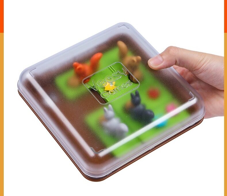 Squirrels Go Nuts! includes 60 challenges; solutions to these challenges draw from cognitive skills including planning and logic. It features a portable game board with a lid, making it perfect for travel.