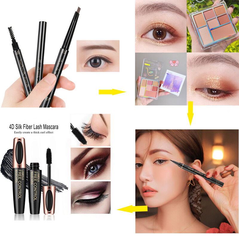 LAMEILA 13-piece set of BB cream + Loose powder + Eye shadow + Eyebrow pencil + Eyeliner + Mascara + Highlight contour pen + Lipstick + Blush + Eyelash curler + Eyebrow trimmer + Makeup brush + Concea