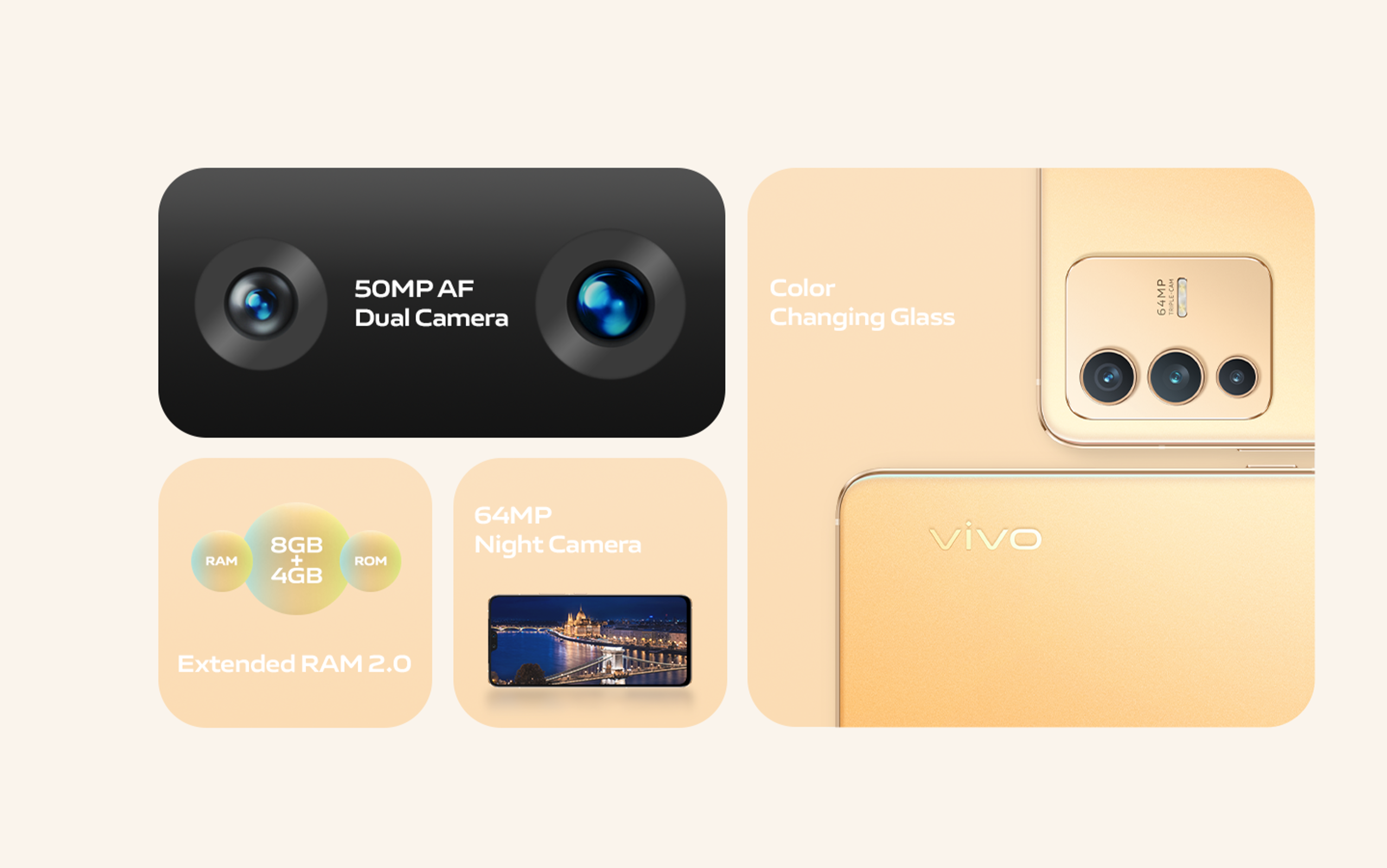 vivo V23 5G [8GB+4GB/128GB] 50MP AF Front Dual Camera | Colour Charging Glass | 7.39mm Simple Refinements | Dual Tone Spotlight | 105* Super Wide Angle Camera 【2 YEARS WARRANTY】