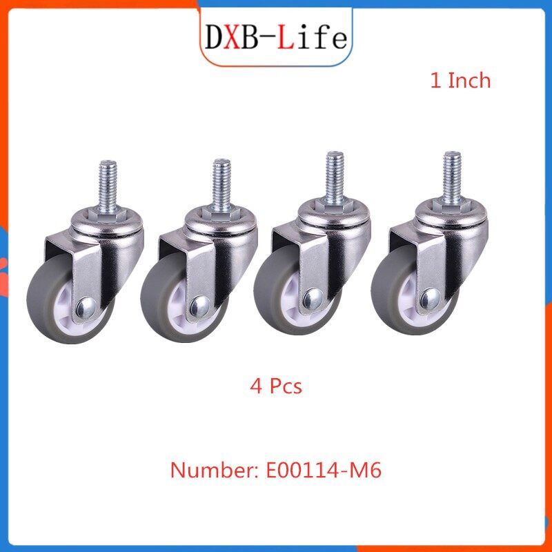 4 Pcs/Lot Casters 1 Inch Gray Tpe Screw Caster, M6 Silent Wheel, Diameter25mm Household Universal Wheel