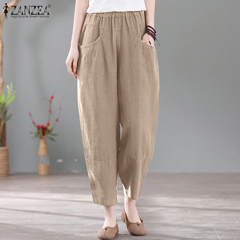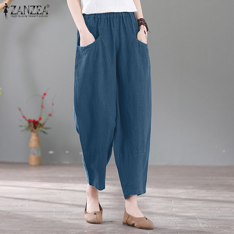 ZANZEA Women Summer Cotton Loose Harem Pants Retro Casual Slacks Long Trousers