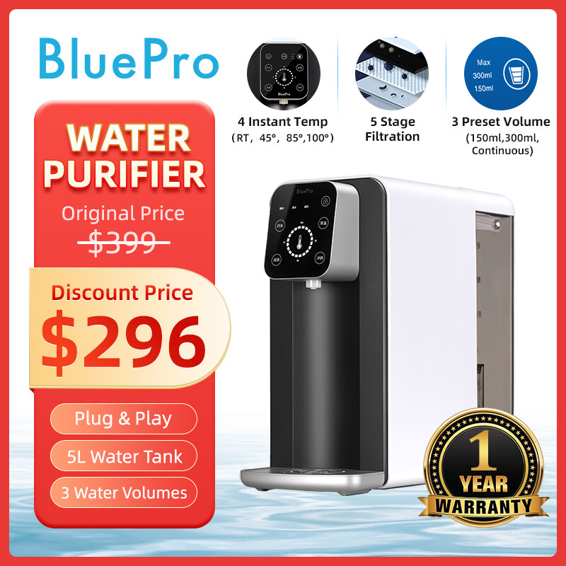 BluePro Water Dispenser 3 Second Instant Heating with RO Reverse Osmosis Filter Plug & Play 5L Water Tank-B04