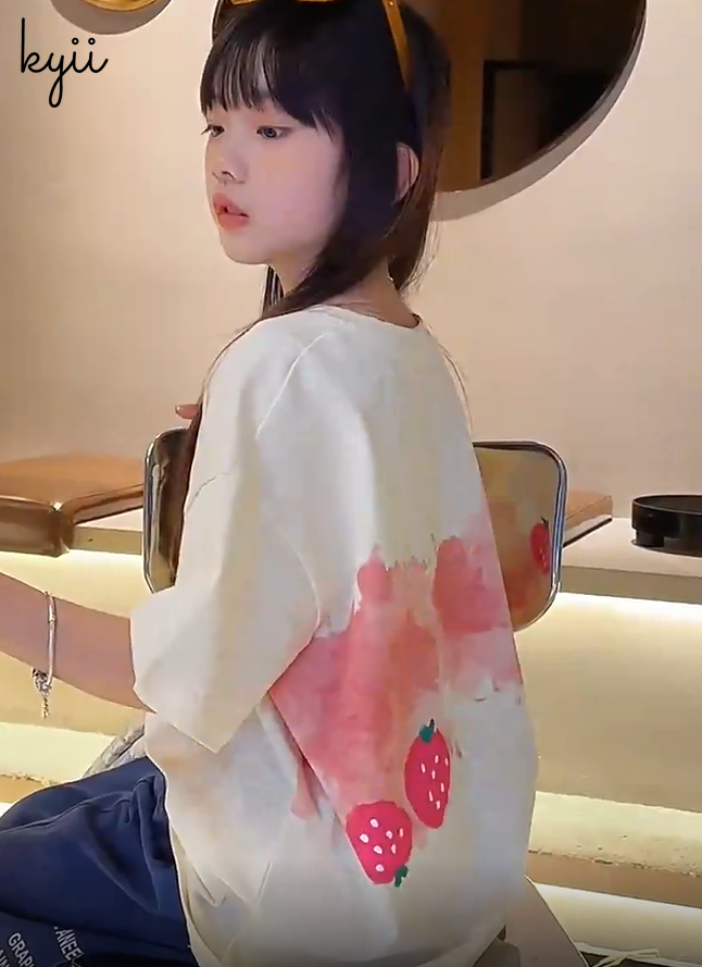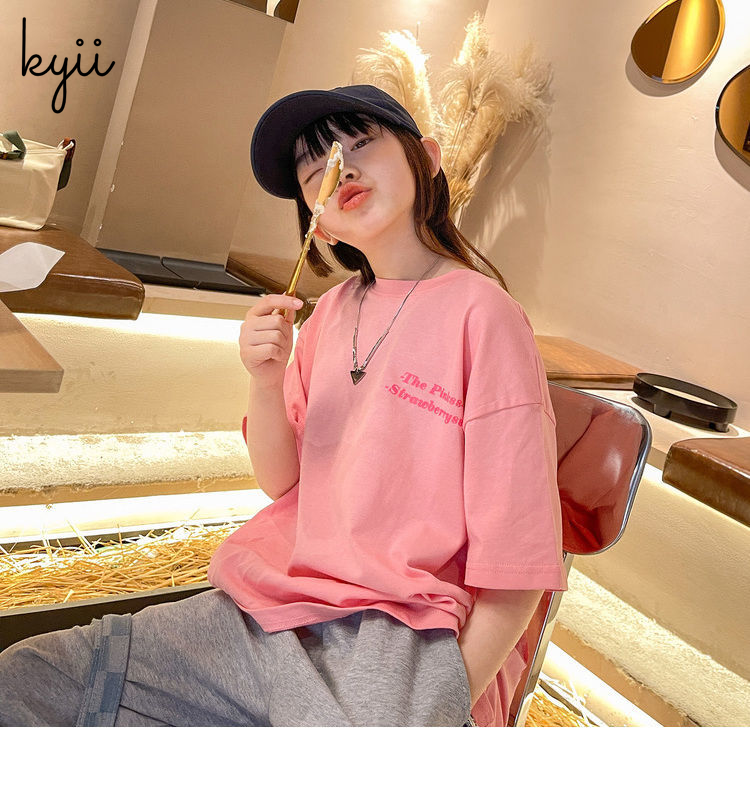KYII Girl Summer children Korean Round-neck shirt Versatile short sleeve Top kyii0036