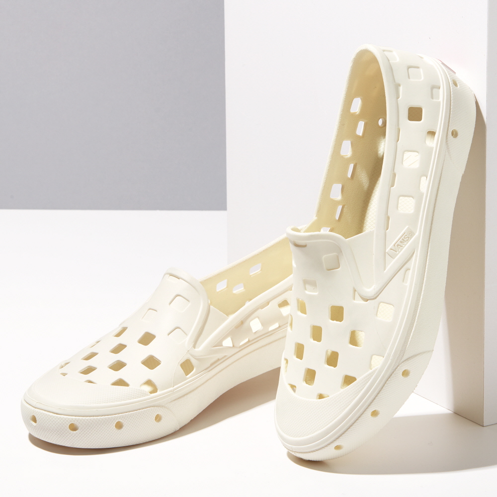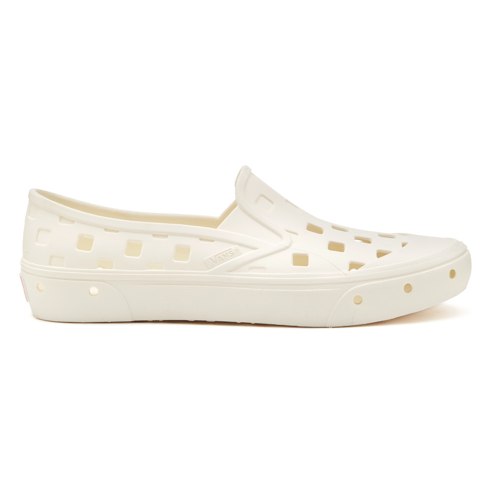 Introducing the first go anywhere, do anything, rinseable Slip-On Sandals arent for everyone, but wearing shoes to the beach isnt always ideal, either-and thats why weve welcomed the Slip-On TRK to the Vans family. Just go surf, rinse, then repeat. Taking the Classic Slip-On silhouette to a whole new level, the Slip-On TRK combines all the Vans DNA that you know and love with a durable, single piece injected construction, deconstructed checkerboard drainage holes for breathability, and an oversized reverse waffle sole for incredible traction in any situation. Designed to be lightweight and fully rinseable, the Slip-On TRK is easy to pack for your next adventure, so you can slip-on and on and on. - BIG-TIME TRACTION - Improved traction for any situation, thanks to the oversized reverse waffle sole. - BREATHABLE AND RINSABLE - Drainage holes mean that whatever goes in goes right back out. - A ONE-PIECE, SOLID, DURABLE DESIGN - A single-piece injected construction makes the Slip-On TRK collapsible and packable, as well as durable.
