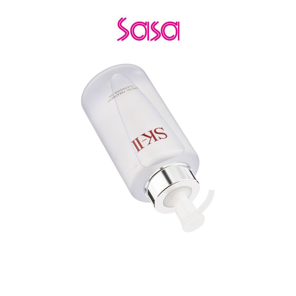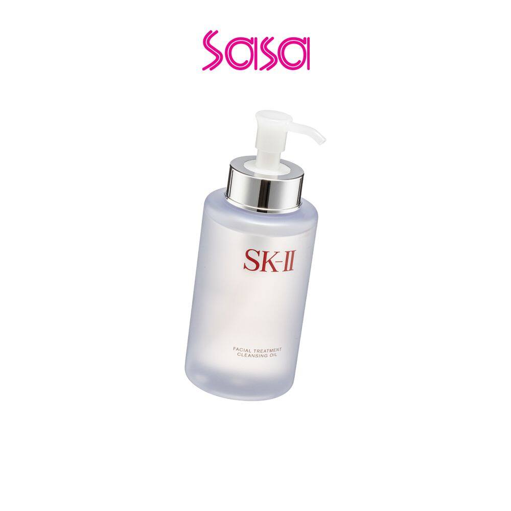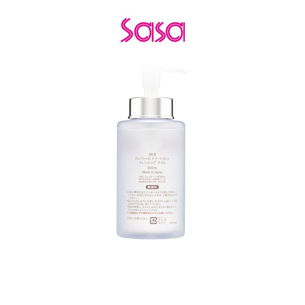 SK-II Facial Treatment Cleansing Oil (250ml) Enriched with Pitera™ essence and apple seed essence to deeply clear dirts from pores and dissolve makeup, bare face appears clean and pure.Product Features:• Conditioning : Rich in Pitera™ essence and apple seed essence, skin quality is enhanced with improved glow and reduced spots. This cleansing oil softens skin while moisturizes it.•Purifying : Superior emulsification power effectively dissolves and removes makeup, easily cleanse skin in contact with water.•Calming : Mild texture comforts skin without leaving a tense sensation after use, brightening skin.Ingredients:• Pitera™ Essence, Apple Seed Essence : Improving skin quality, luster, spots, etc., Softening while moisturisingHow to use:STEP1:Take an appropriate amount on dry palm and apply on entire dry face, gently massage. STEP2:Add a small amount of water, continue massage with both hands. STEP3:Rinse with clear water, apply more on desired area with heavy makeup.