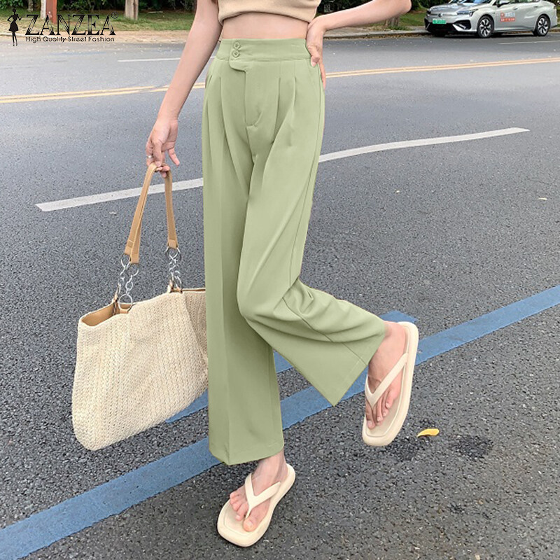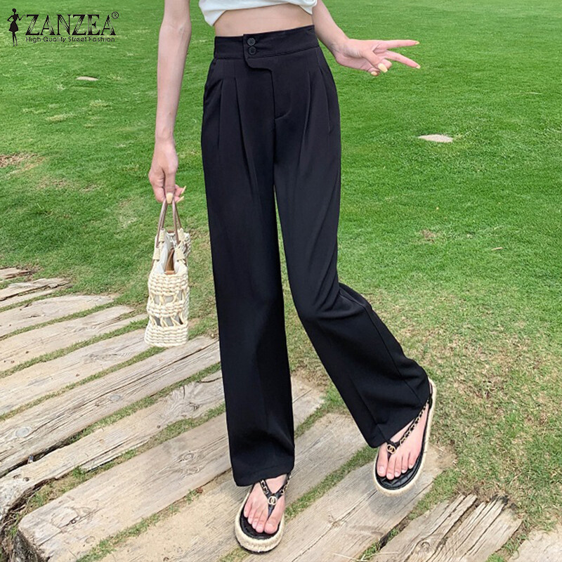 ZANZEA Korean Style Women High Waist Solid Casual Outing Loose Long Suit Pants Trousers