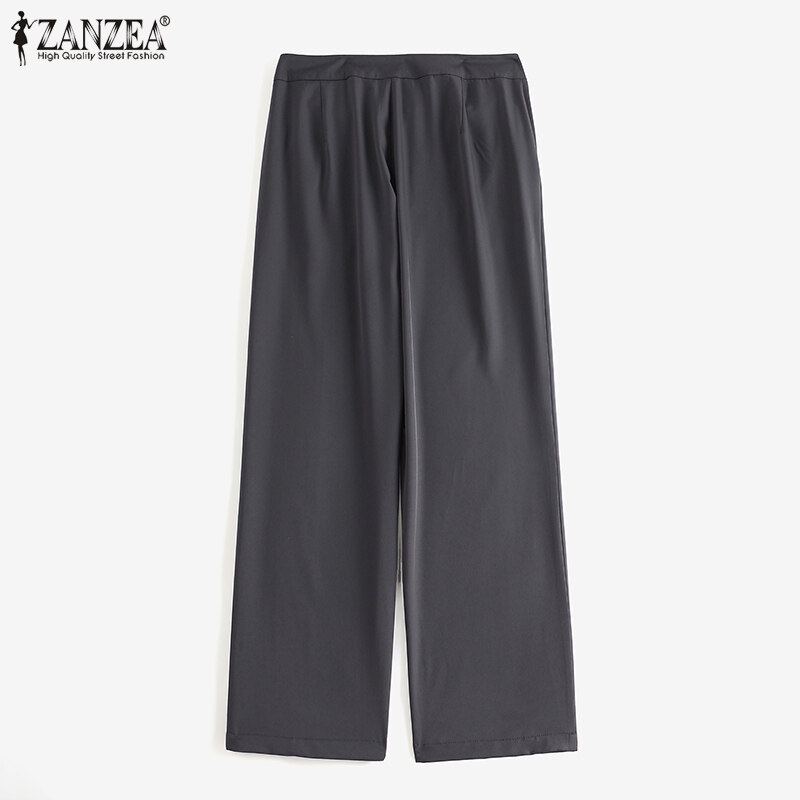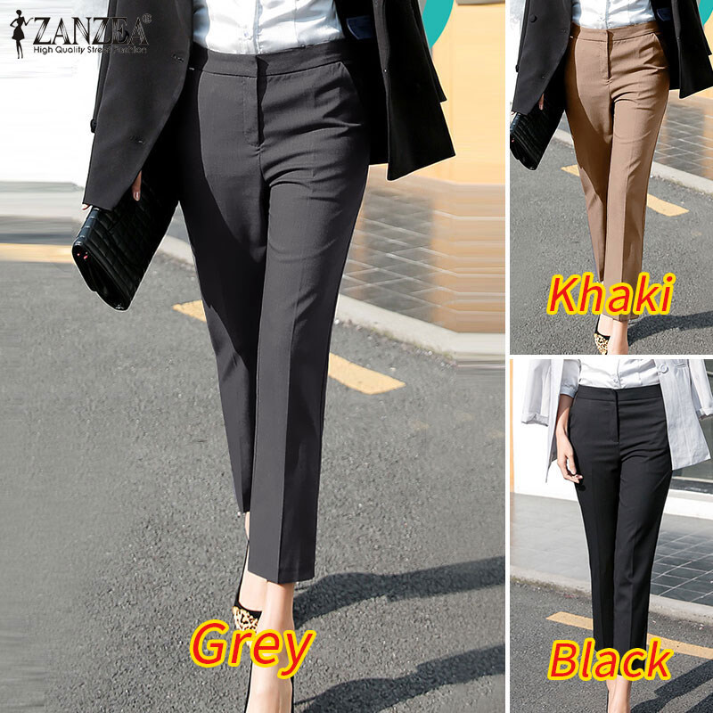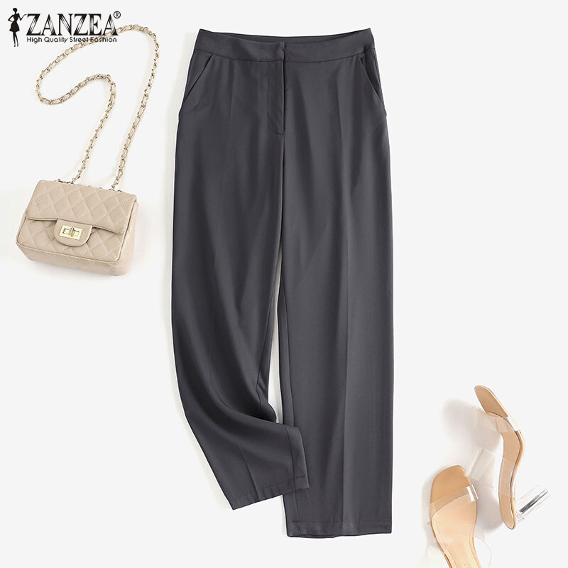 ZANZEA Womens Straight Business Work OL Suit Pants Solid Color Fit Long Trousers