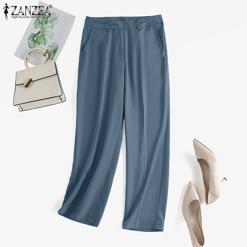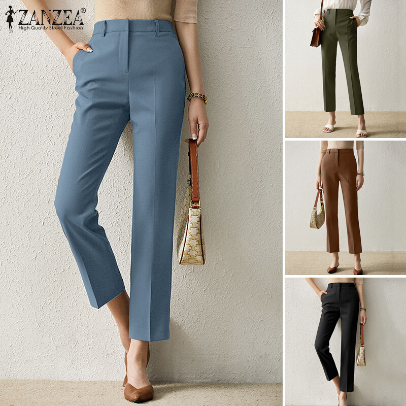 ZANZEA Womens Summer Plain Fit Trousers Office Lady Formal Long Suit Pants Bottoms #11