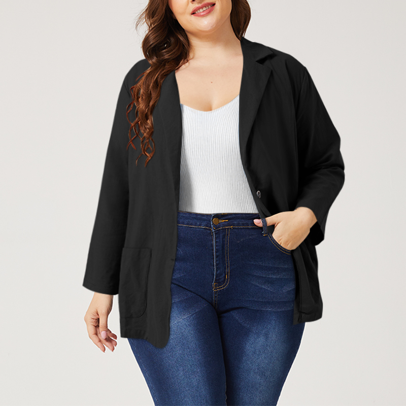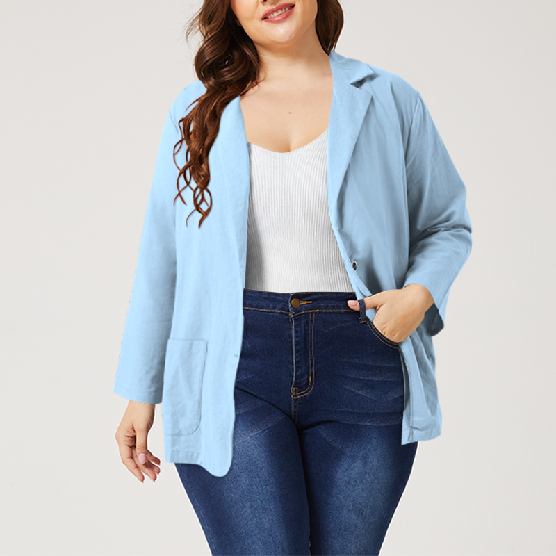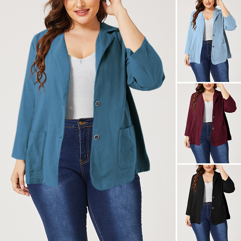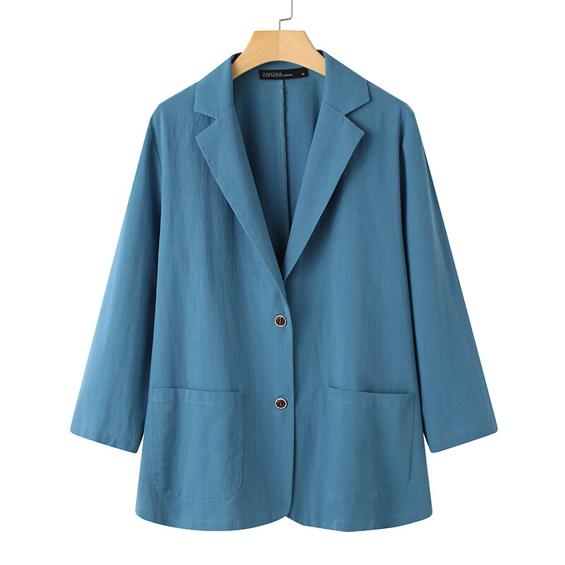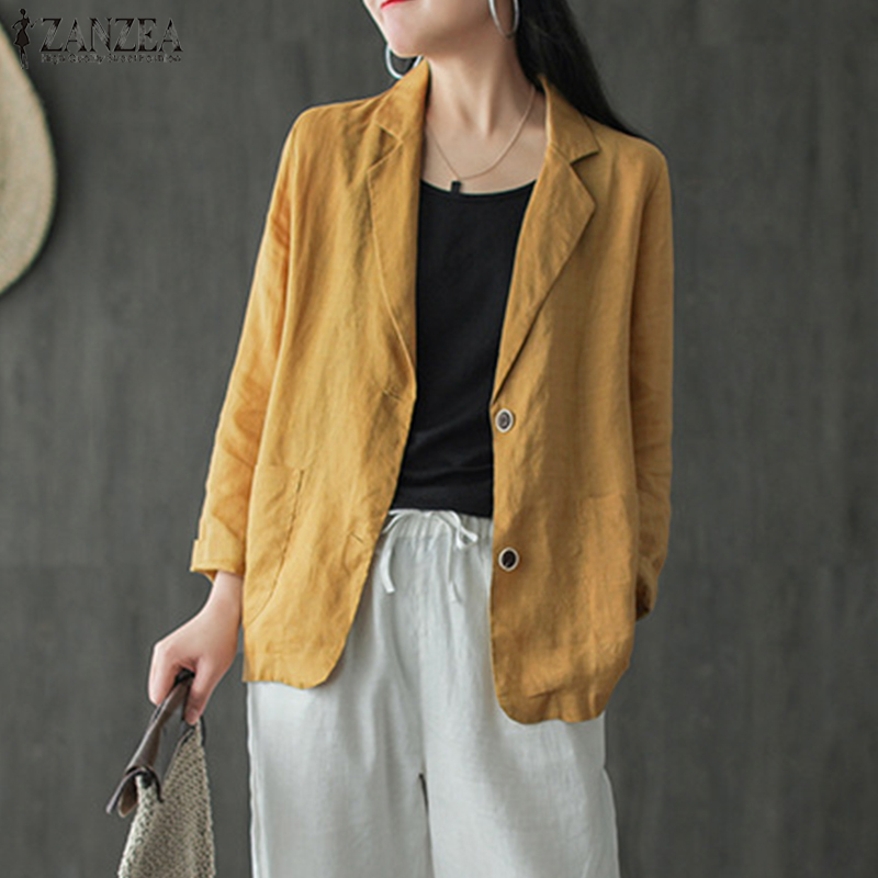 ZANZEA Women Long Sleeve Collared Button Down Solid Cotton Blazer Coat Plus Size #5