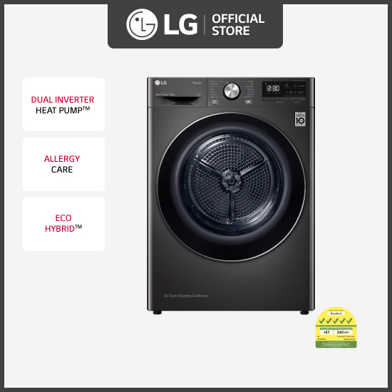 [Bulky] LG FV1411S2B 11KG, Front Load Washer, Black + LG TD-H90VBD 9KG Dual Inverter Heat Pump dryer (Black)