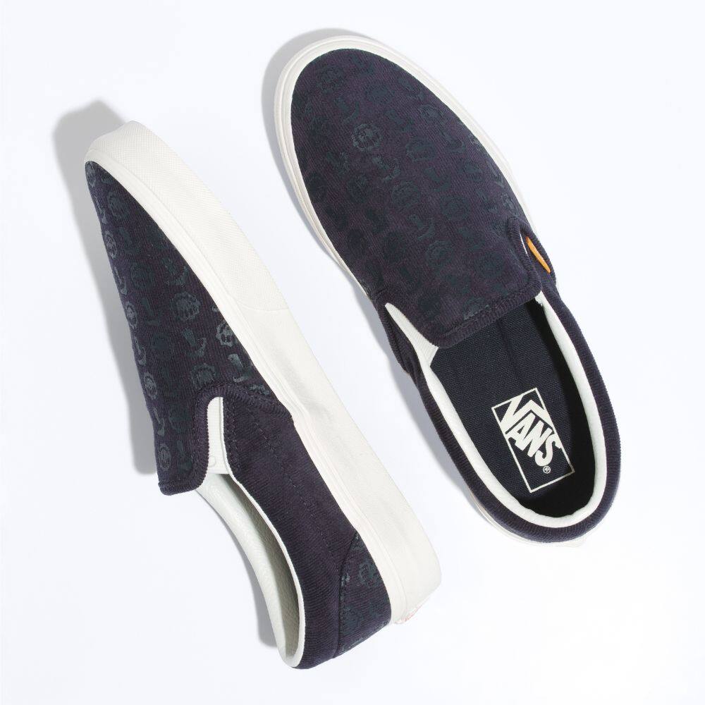 The Trippy Cord Classic Slip-On features sturdy low profile slip-on canvas uppers with the iconic Vans checkerboard print, padded collars, elastic side accents, and signature rubber waffle outsoles.