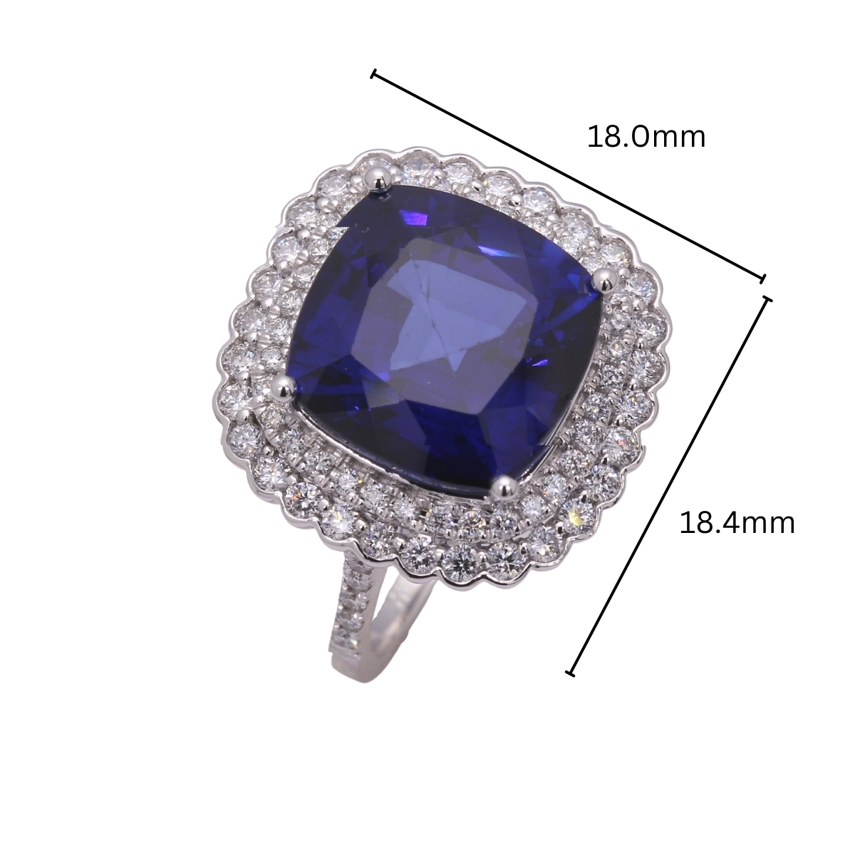 TAKA Jewellery Cushion Cut Lab Grown Blue Sapphire Diamond Ring 10K