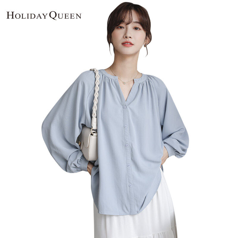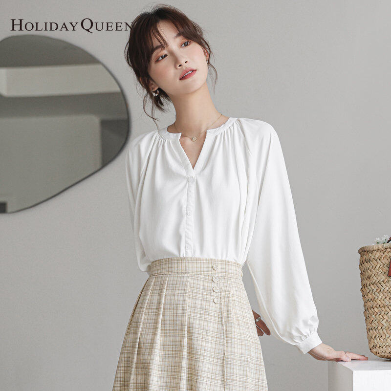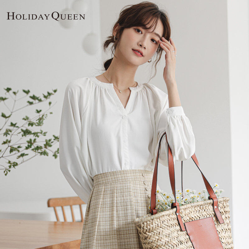 HolidayQueen Women's Korean Style Loose White Shirt Retro Hong Kong Style Shirt Women's Design Niche Top Free Shipping HQ1811