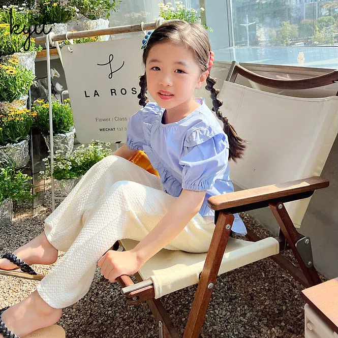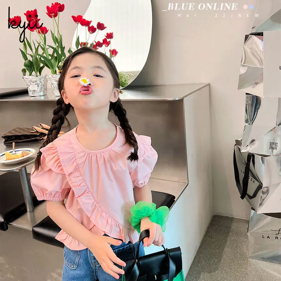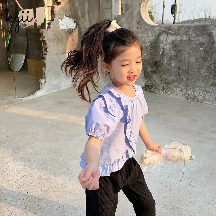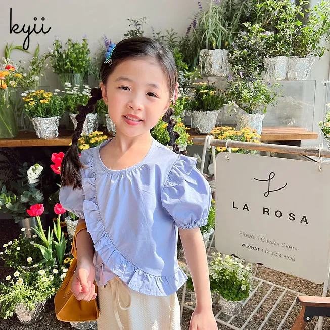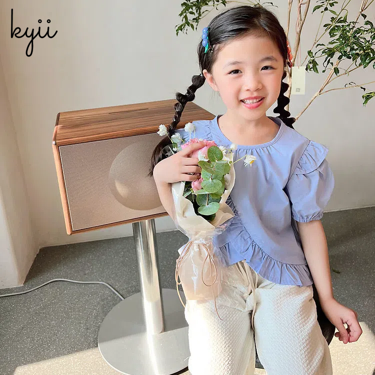 KYII Girl Summer children Korean Round-neck shirt Versatile short sleeve Top kyii0037
