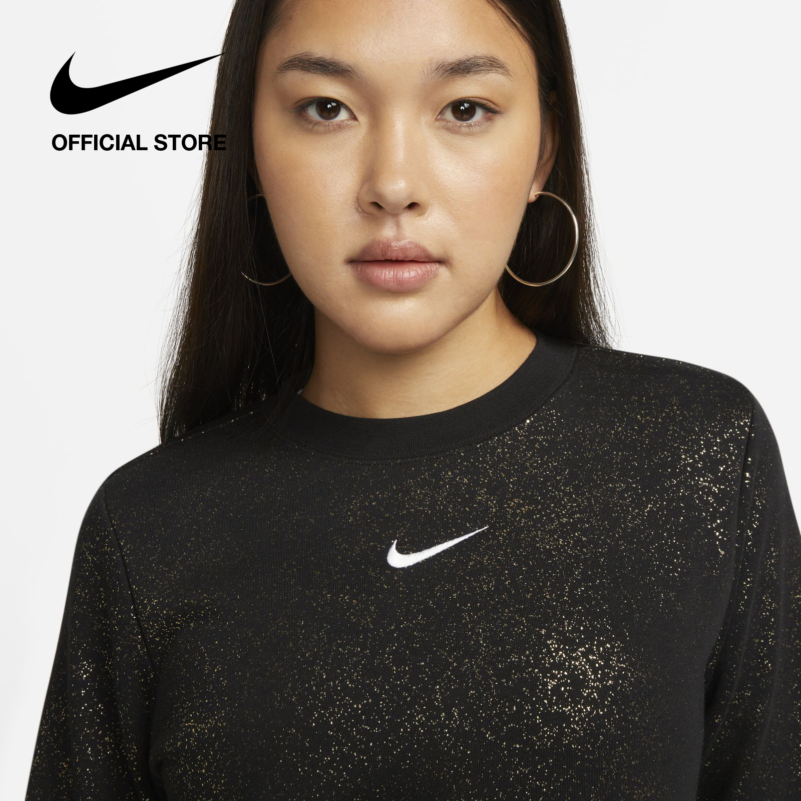 Nike Women's Sportswear AOP Crew Long Sleeve Top - Black