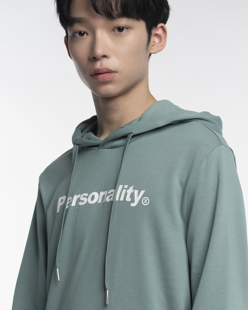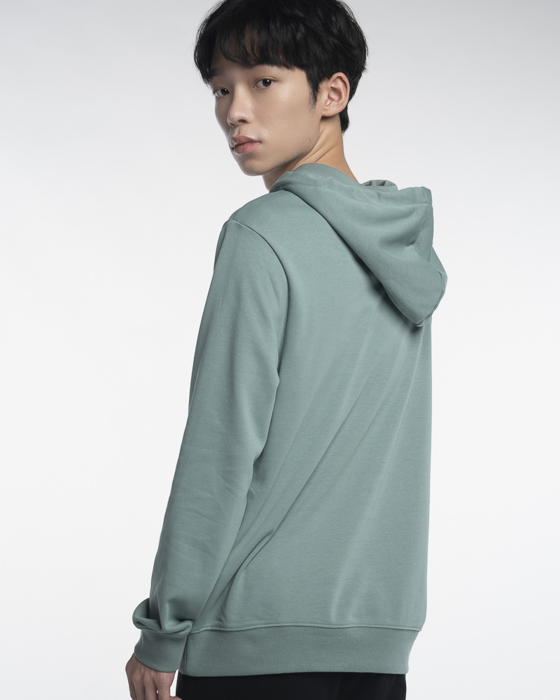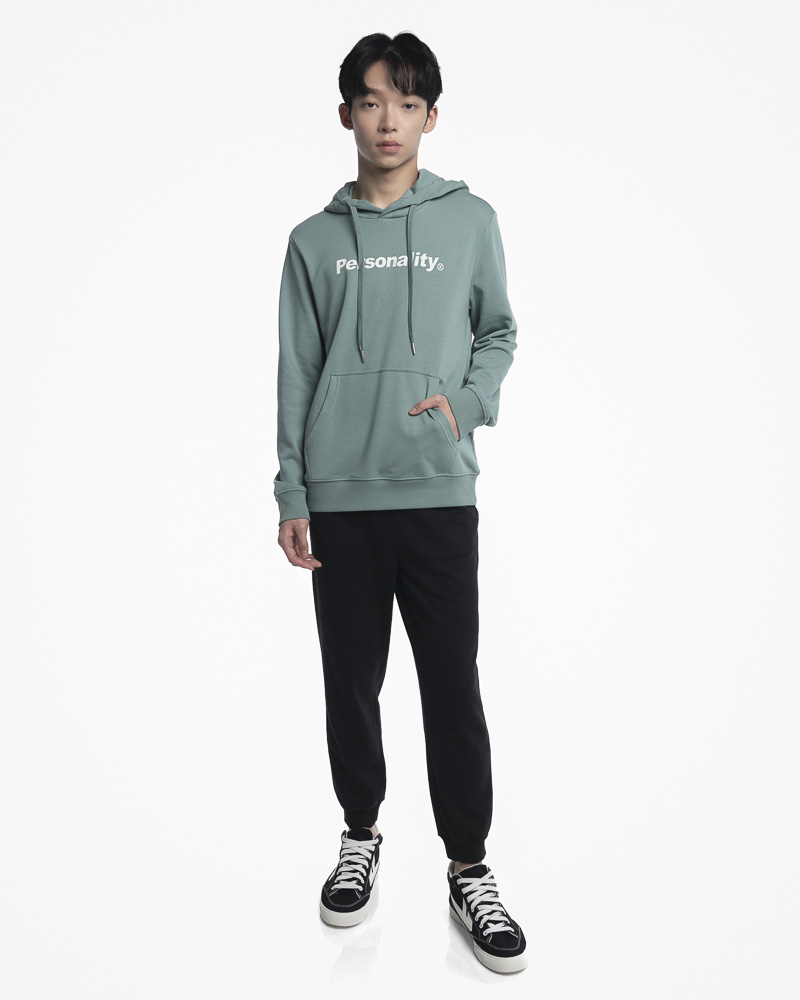 Yishion Men Solid Coloured Pullover Hoodie with Kangaroo Pockets and Personality Slogan (Teal Green)