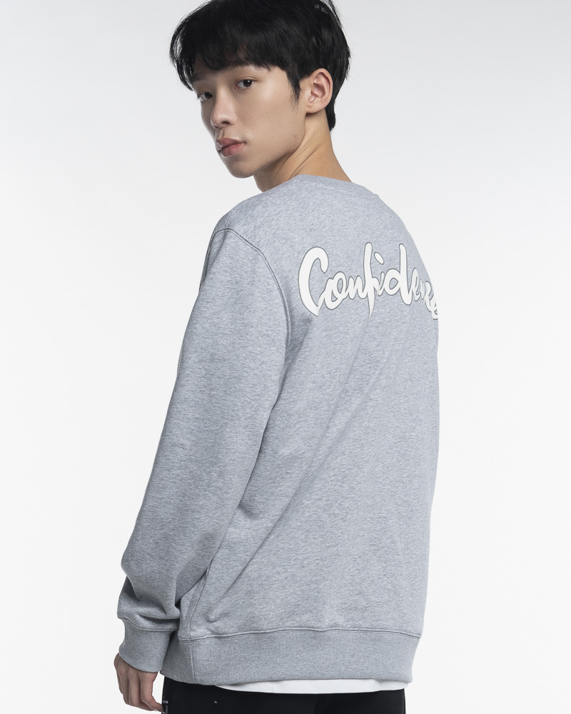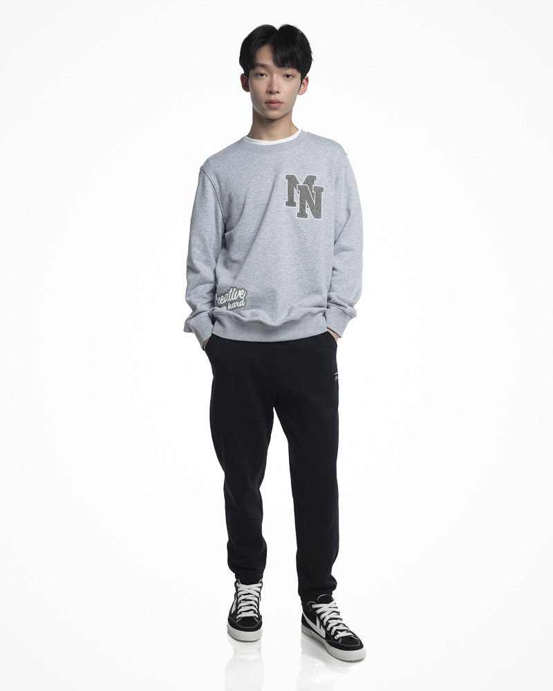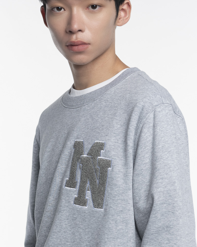 Yishion Men Solid Coloured Long Sleeve Sweatshirt with MN Fleece Patch (Heather Grey)