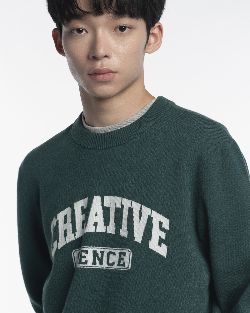 Yishion Men Solid Coloured Long Sleeve Sweatshirt with CREATIVE Slogan (Dk. Green)