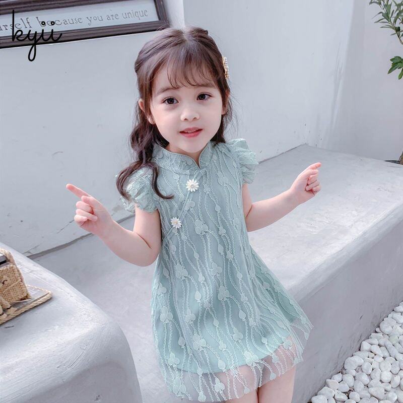 KYII Kids Girls Summer Round-neck Dress Sleeveless Casual Loose Dress kyii0215