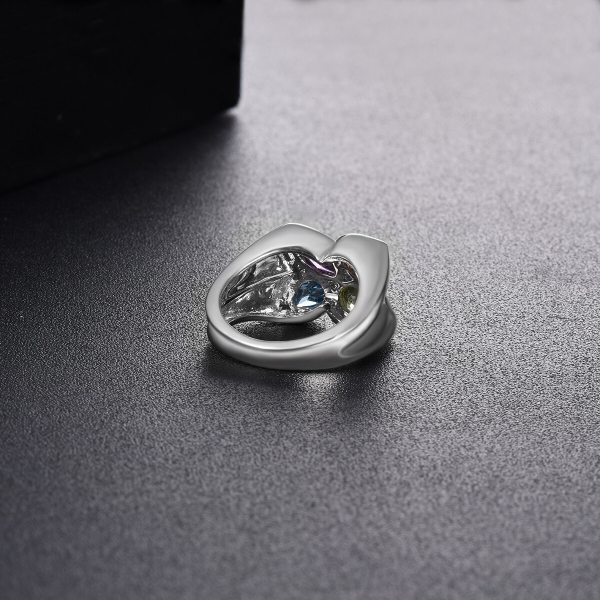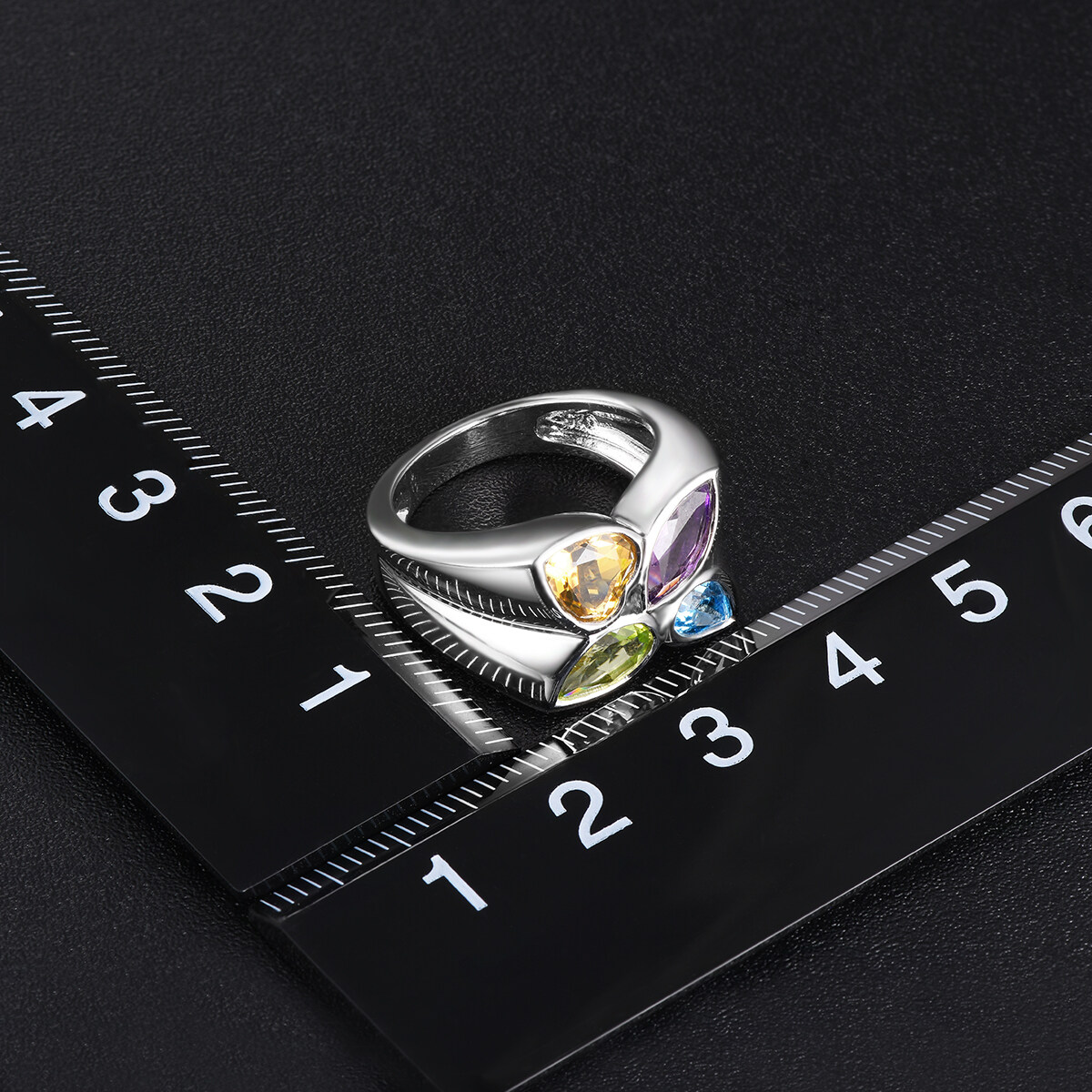 Lohaspie Jewelry 3.2 Carats Silver 925 Original Ring For Women Natural Amethyst Citrine Topaz Ring Colorful Gemstone Topaz Birthstone Ring Jewelry