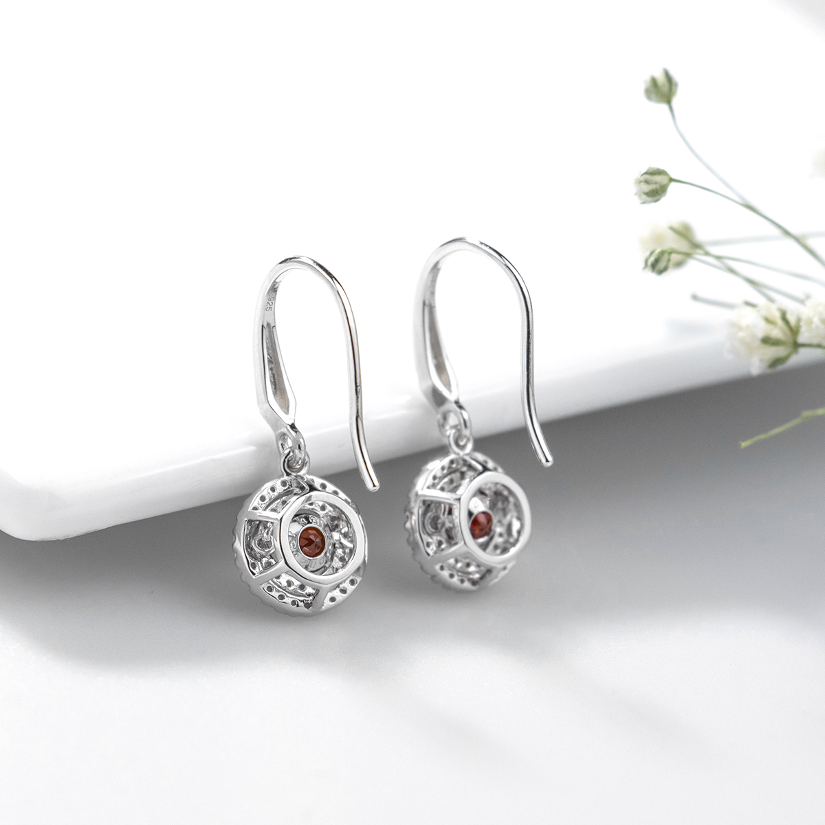 Original Sterling Silver 925 Drop Earring Natural Red Garnet Gemstone Elegant Style Women Jewelry Birthday Gift