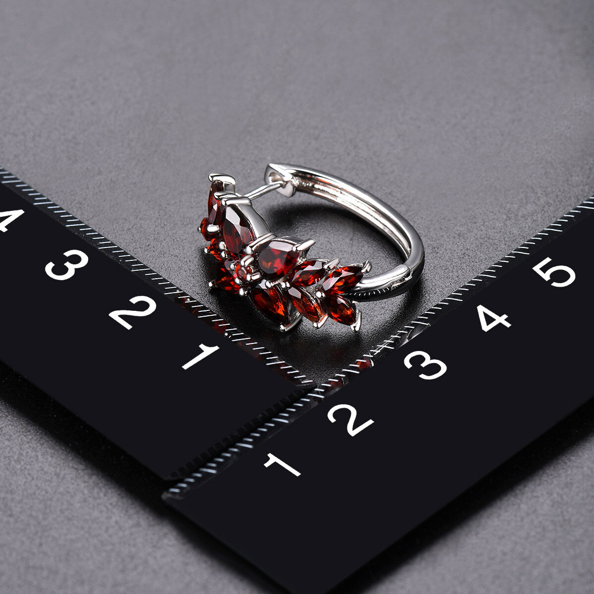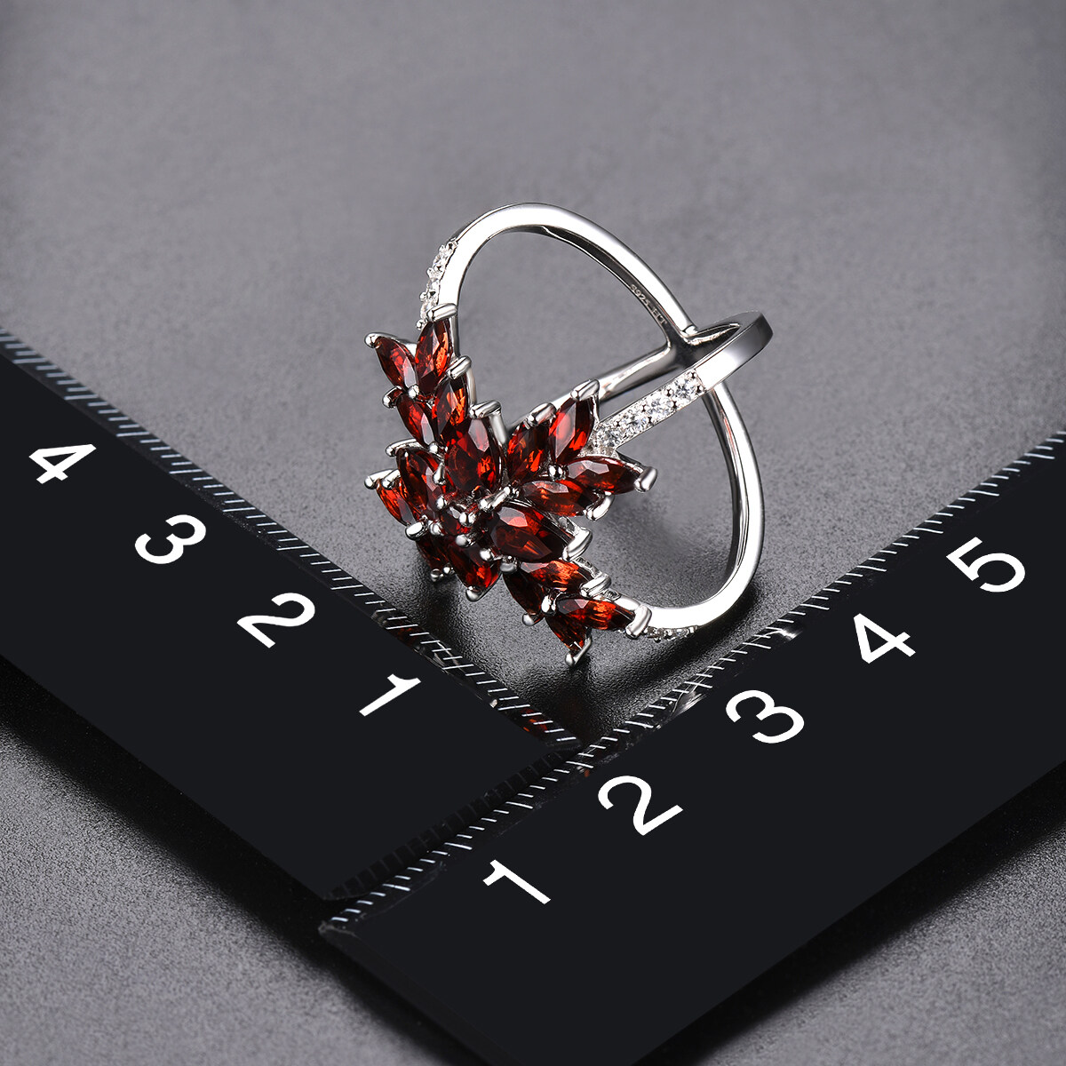 Jewelry Sets Genuine Red Garnet Cluster Earrings Ring Silver 925 Original Design Red Gemstone Fine Elegant Crystal Jewelry for Women Engagement Anniversary Gift