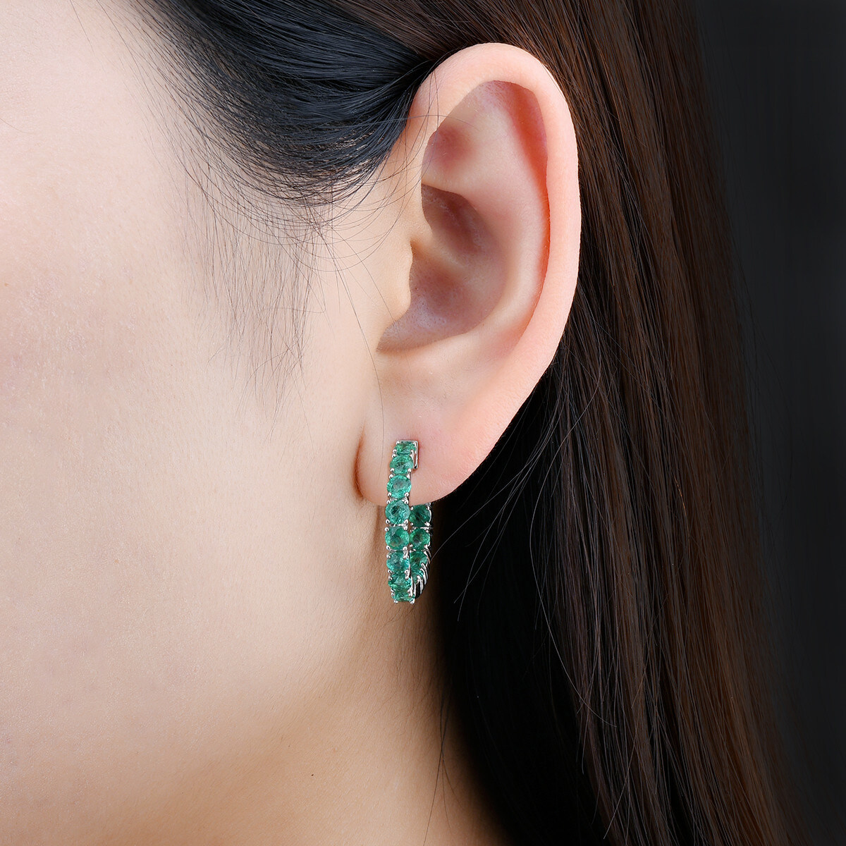 Genuine Sterling Silver 925 Clip Earring Natural Emerald Green Gemstone Women Top Quality Style Precious Jewelry Gifts