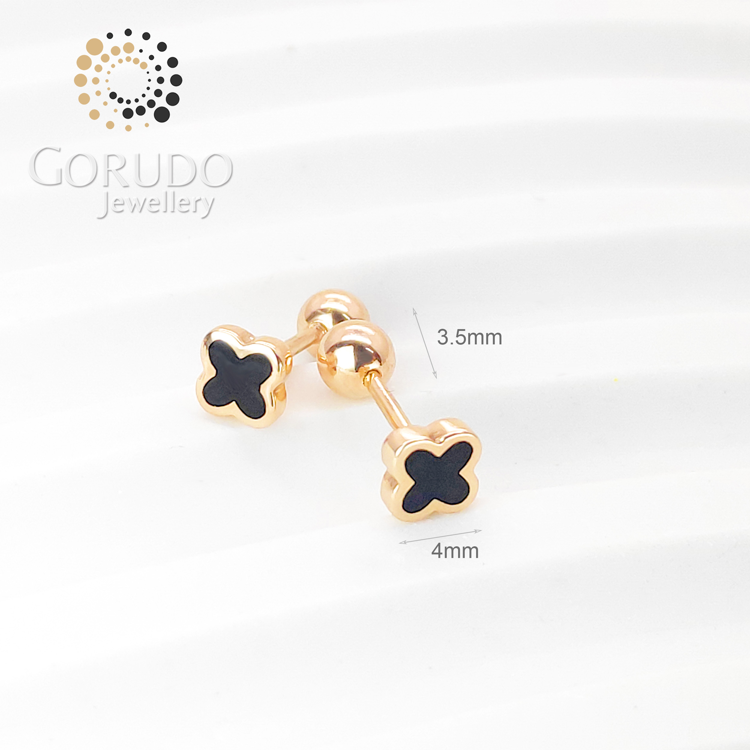 Gorudo Jewellery 750/18K Rose Gold Mini Four Leaf Design Screw Ear Stud - FLS