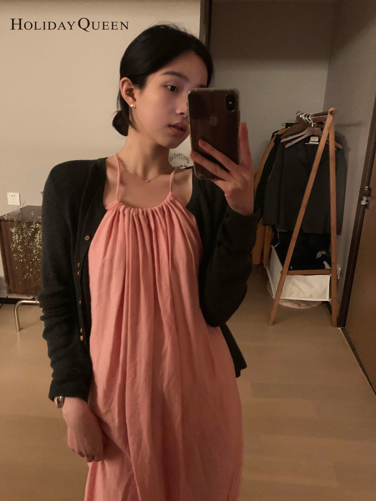 HolidayQueen New natural linen hanging neck loose style dress HQ2053