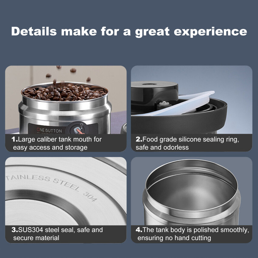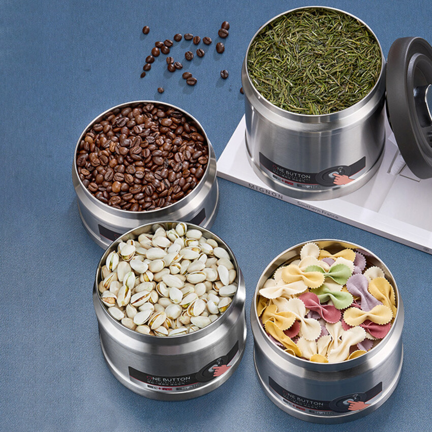 Vacuum Coffee Beans Storage Bottles Stainless Steel 750/1100/1600ML Creative Sealed Tank Food Grains Container Tea