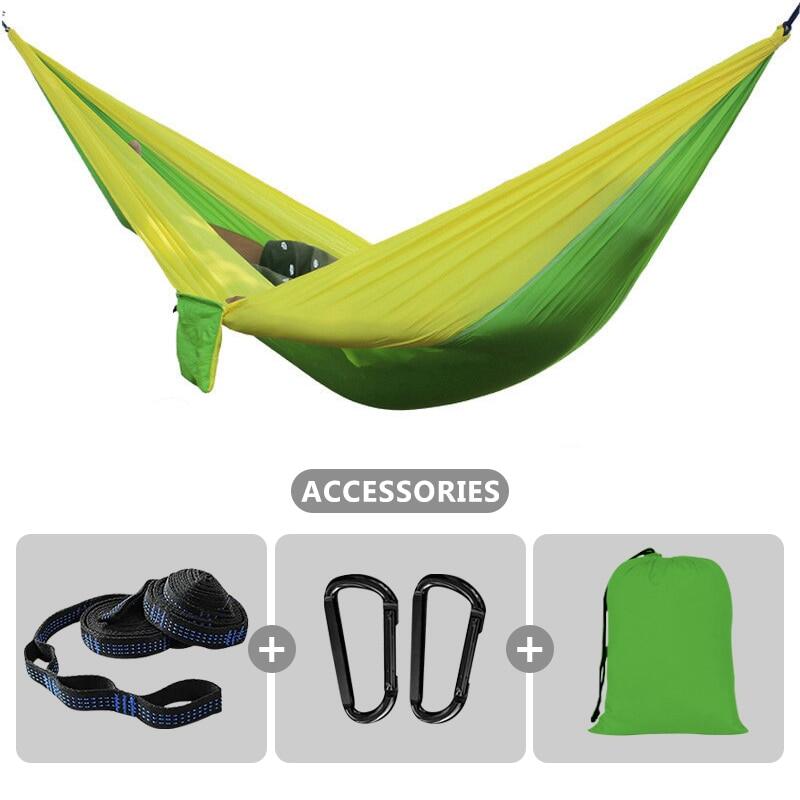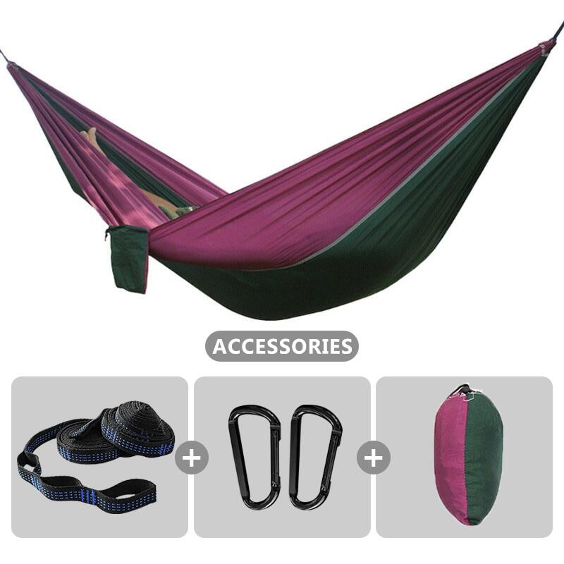 Soft material & Support 500 pounds - Our hammocks are made of new high quality 210T parachute nylon fabric, it is very comfortable and durable. The camping hammocks provide relaxing support up to 500 lbs.