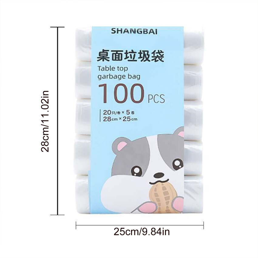 【Ready Stock】100pcs Small Trash Bags 5Rolls Mini Garbage Bag Household Thickened Small Desktop Garbage Can Garbage Bags Disposable Trash Bags Kitchen Tools