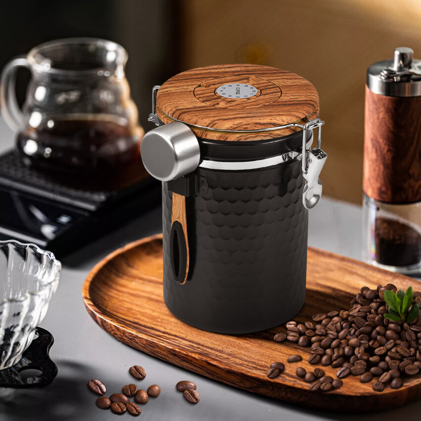 2.Perfect size: with this stainless steel tin with 2800 ml you have the possibility to store 1 kg of coffee beans and can therefore store the complete contents of a coffee packaging in this container