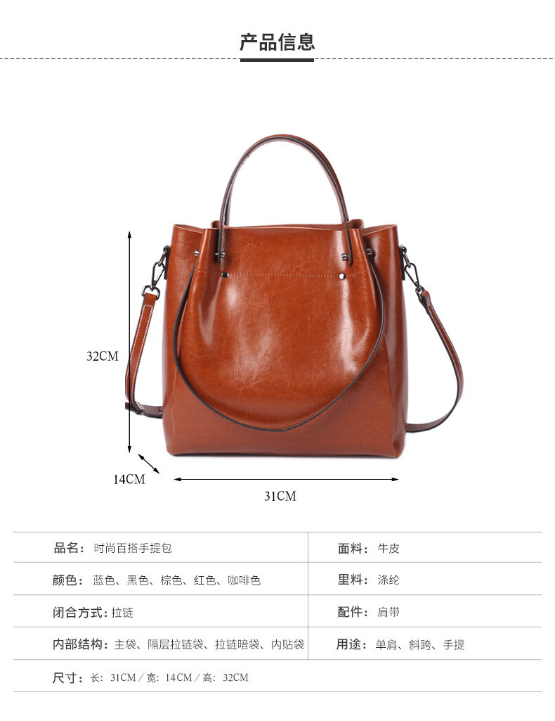 Royal Bagger Handbag for Women Girls Genuine Cow Leather 2021 Retro Shoulder Casual High Capacity Bags Ladies Elegant