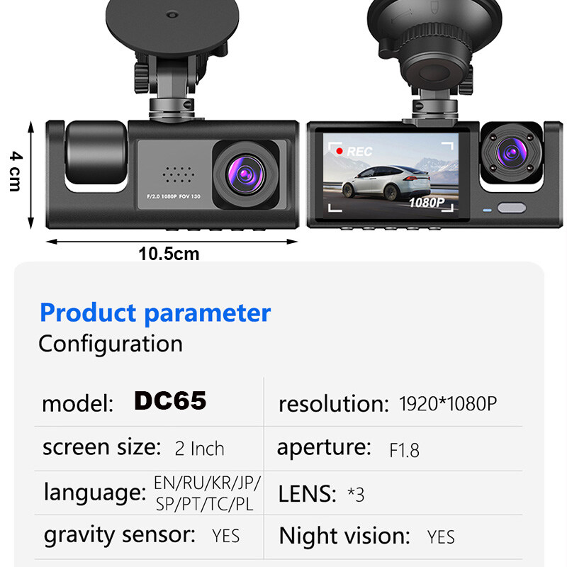 With 1080P front camera + 720P inside camera +720P rear camera, the dash camera can simultaneously record the HD front and rear roads.