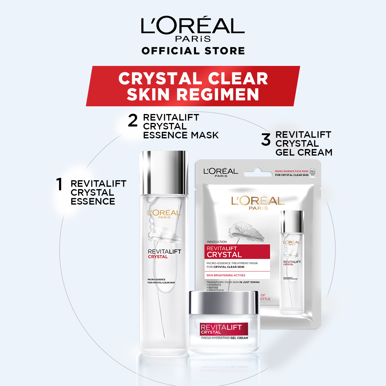 [Bundle of 2] L'Oreal Paris Revitalift 1.5% Hyaluronic Acid Plumping & Hydrating Serum 30ml & Crystal Micro-Essence Water 130ml (Oil Control)