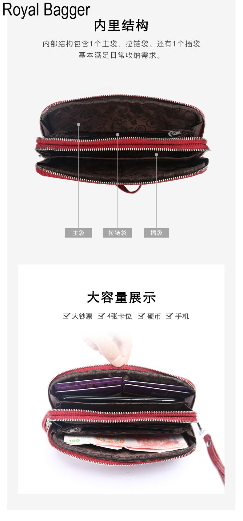 Royal Bagger Long Wallet Purses For Women Girls Genuine Cow Leather 2021 New Ladies Clutch Bag Phone Pocket Handbag Office Purses